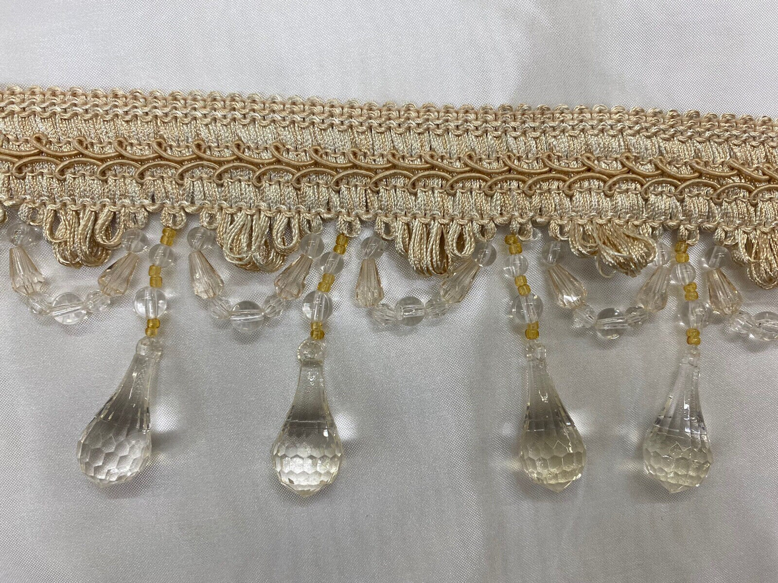 3.5” Tear Drop Beaded Trim Fringe Gimp Top Sold By The Yard Taupe / Clear Ivory Tassel Trim Fringe Fabric for Decoration