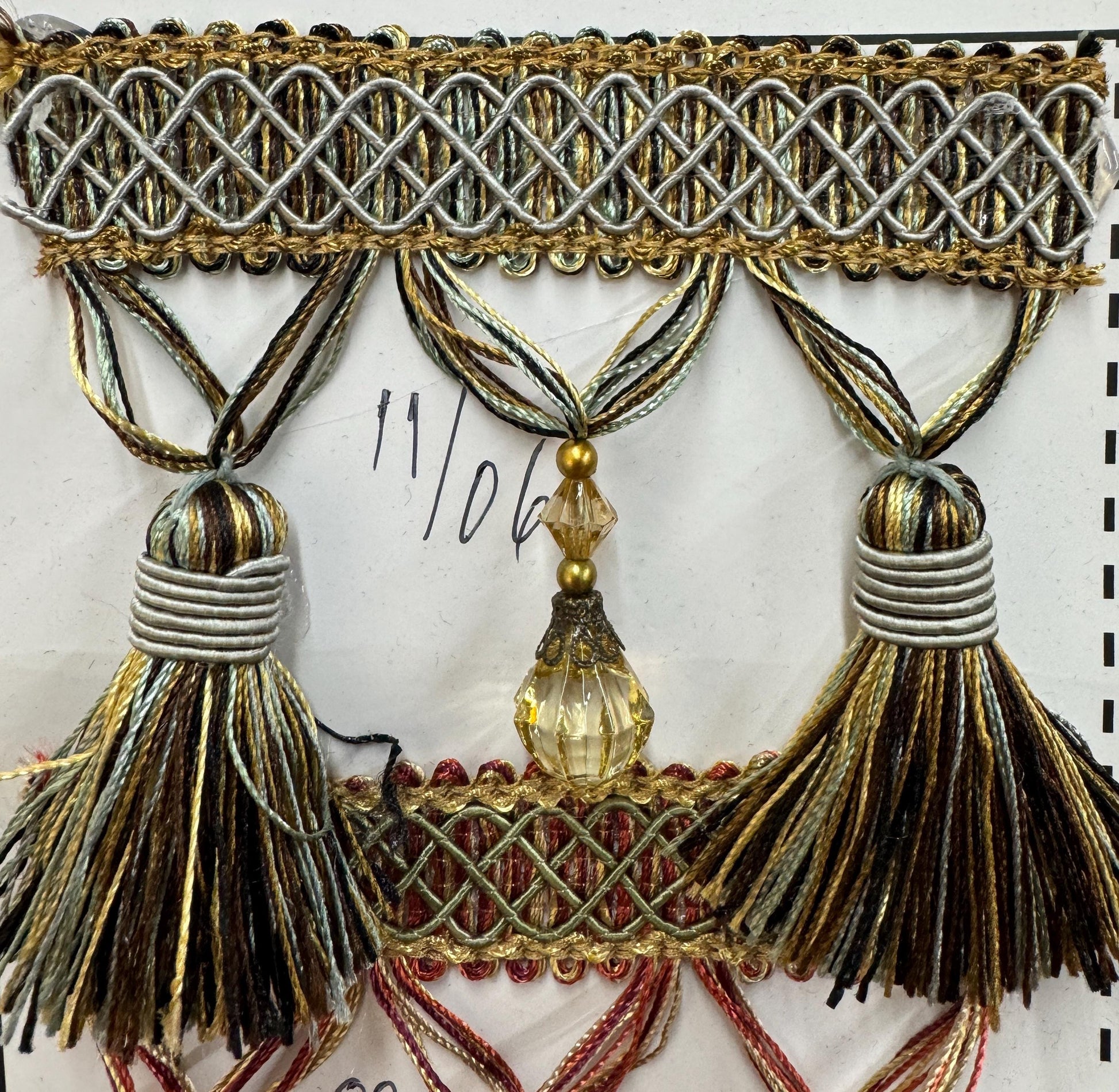 3.5” Tear Drop Beaded Trim Fringe Gimp Top Sold By The Yard Taupe / Clear Ivory Tassel Trim Fringe Fabric for Decoration