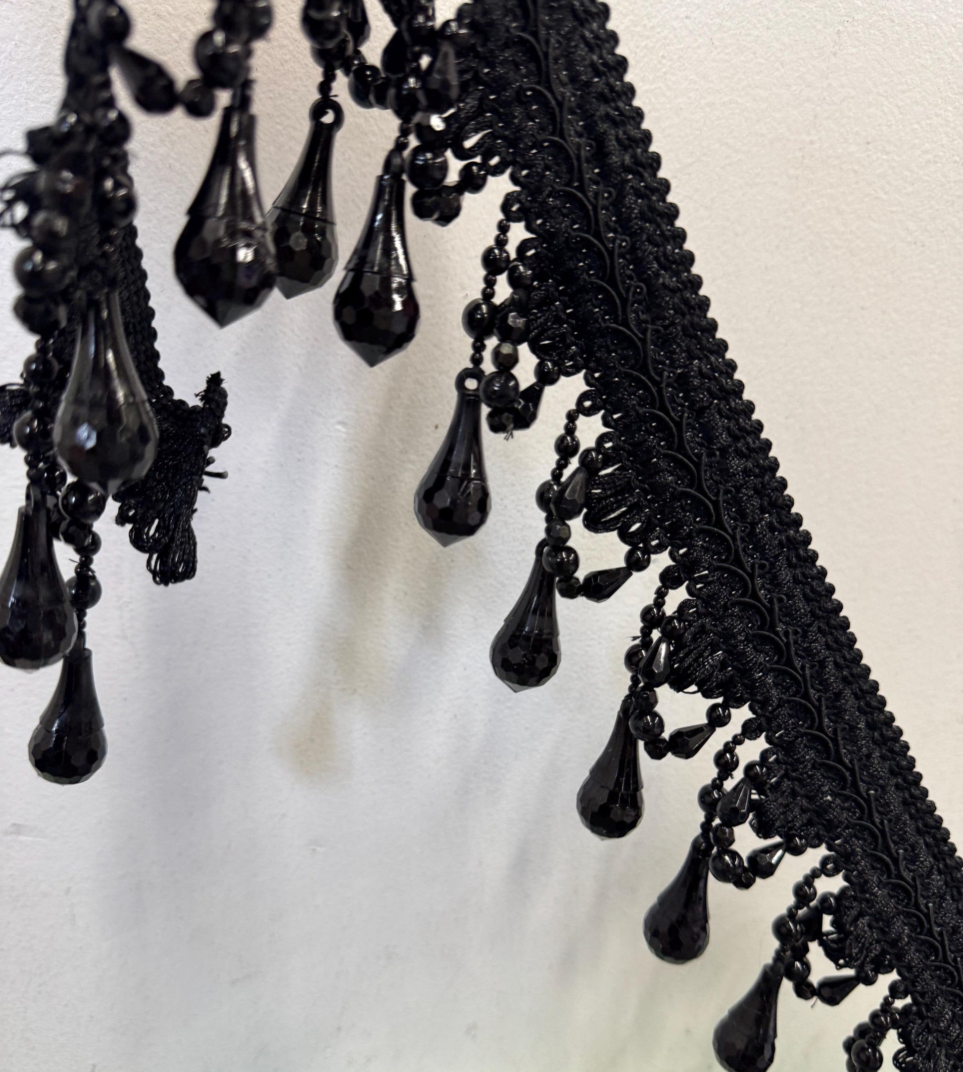 Beaded Trim Fringe 4'' L, W/Gimp Top Sold by The Yard - Black , Brand: ad fabric
