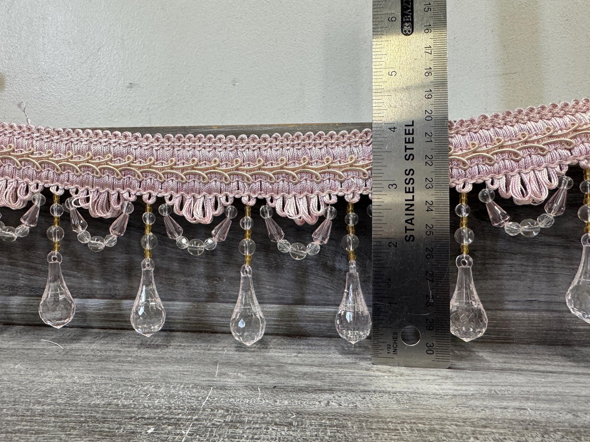 Beaded Trim Fringe 4'' L, W/Gimp Top Sold by The Yard - Blush Pink , Brand: ad fabric