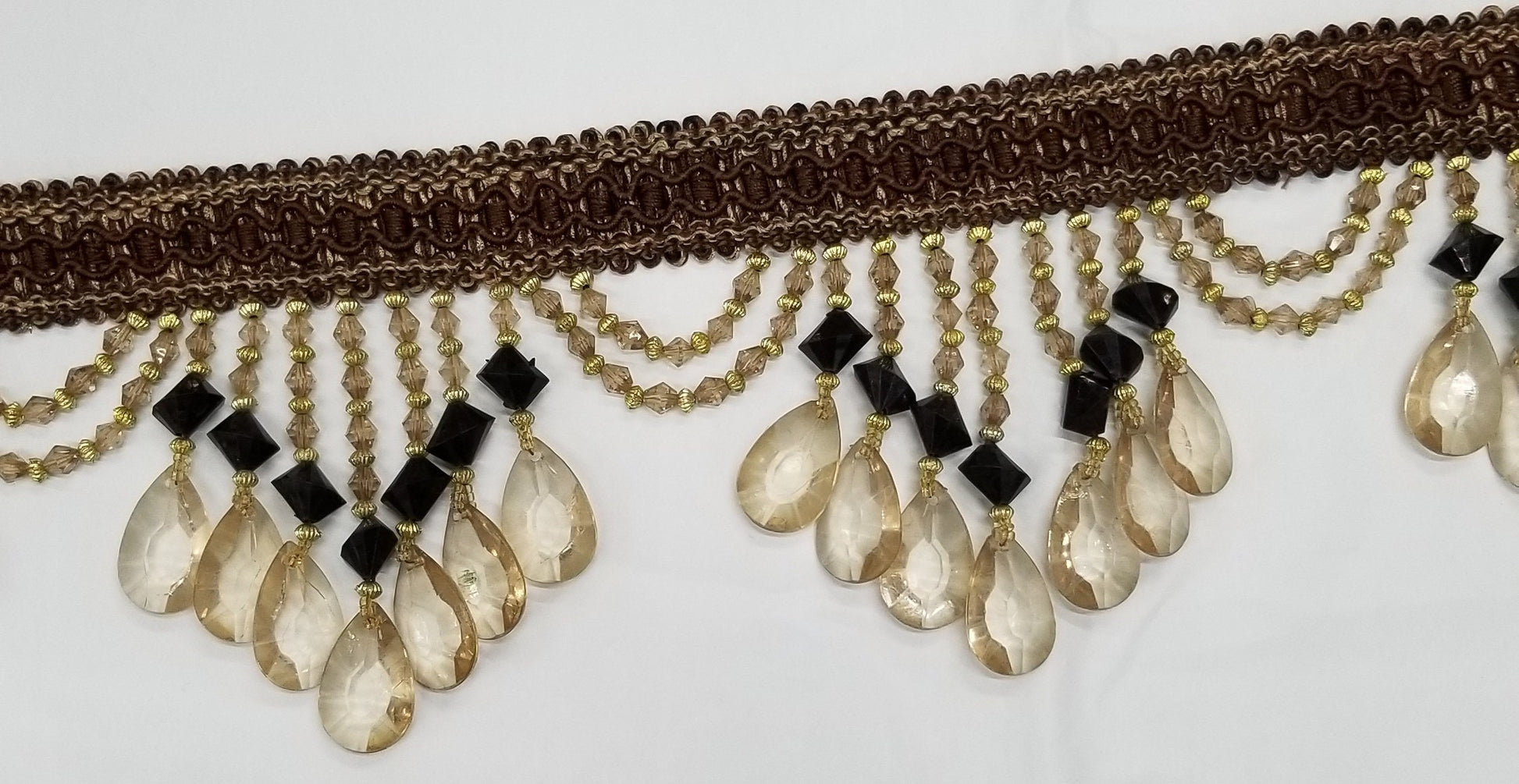 Beaded Trim Fringe 4'' L, W/Gimp Top Sold by The Yard - Brown, Brand: ad fabric
