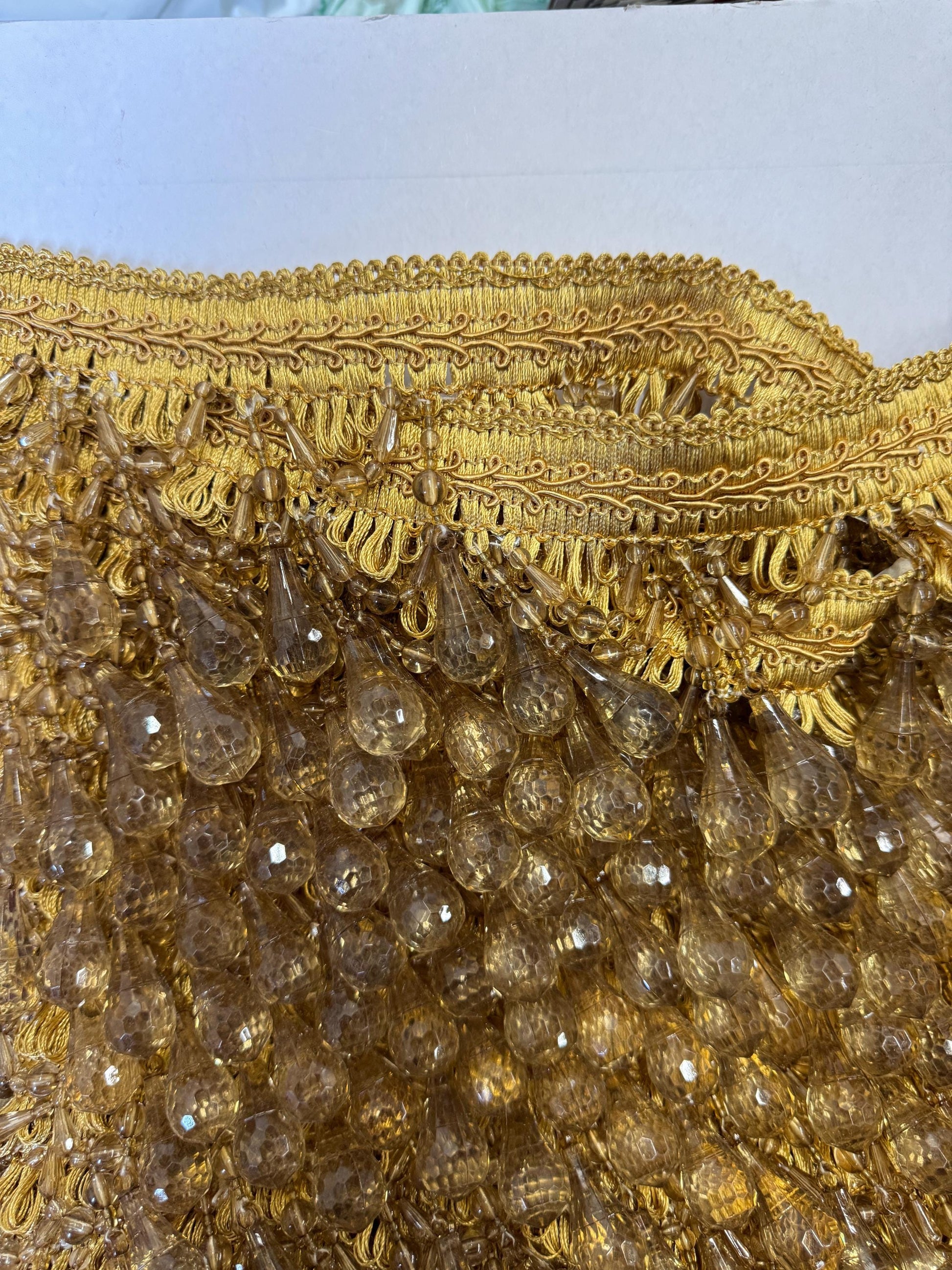 Beaded Trim Fringe 4'' L, W/Gimp Top Sold by The Yard - Gold , Brand: ad fabric