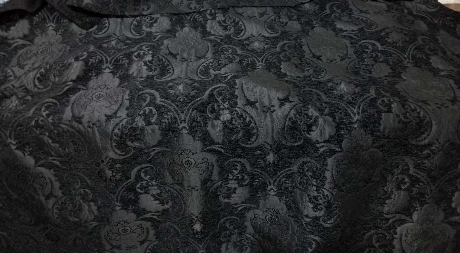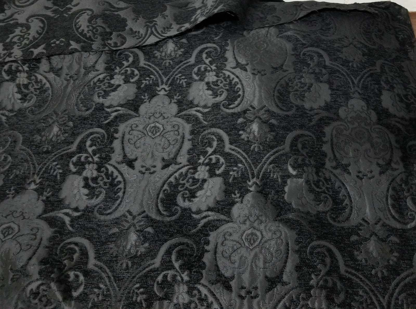Chenille BAROQUE UPHOLSTERY Fabric Jacquard Damask, 54" wide ,color Black/black, sold by yard in continous yards