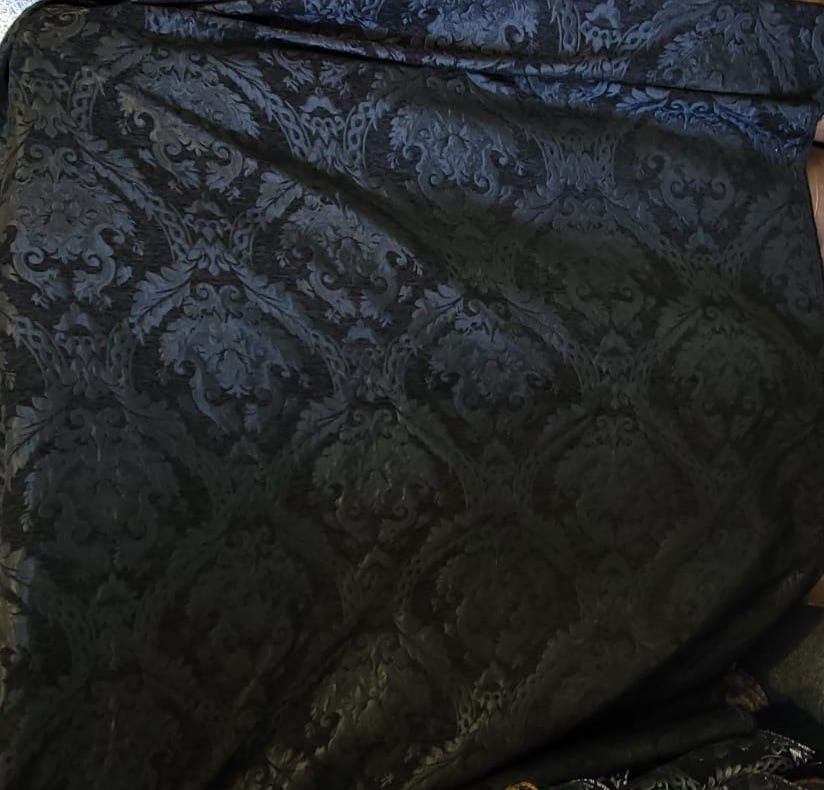 Chenille BAROQUE UPHOLSTERY Fabric Jacquard Damask, 58" wide ,color Black/Black, Reversible, sold by yard in continuous yards