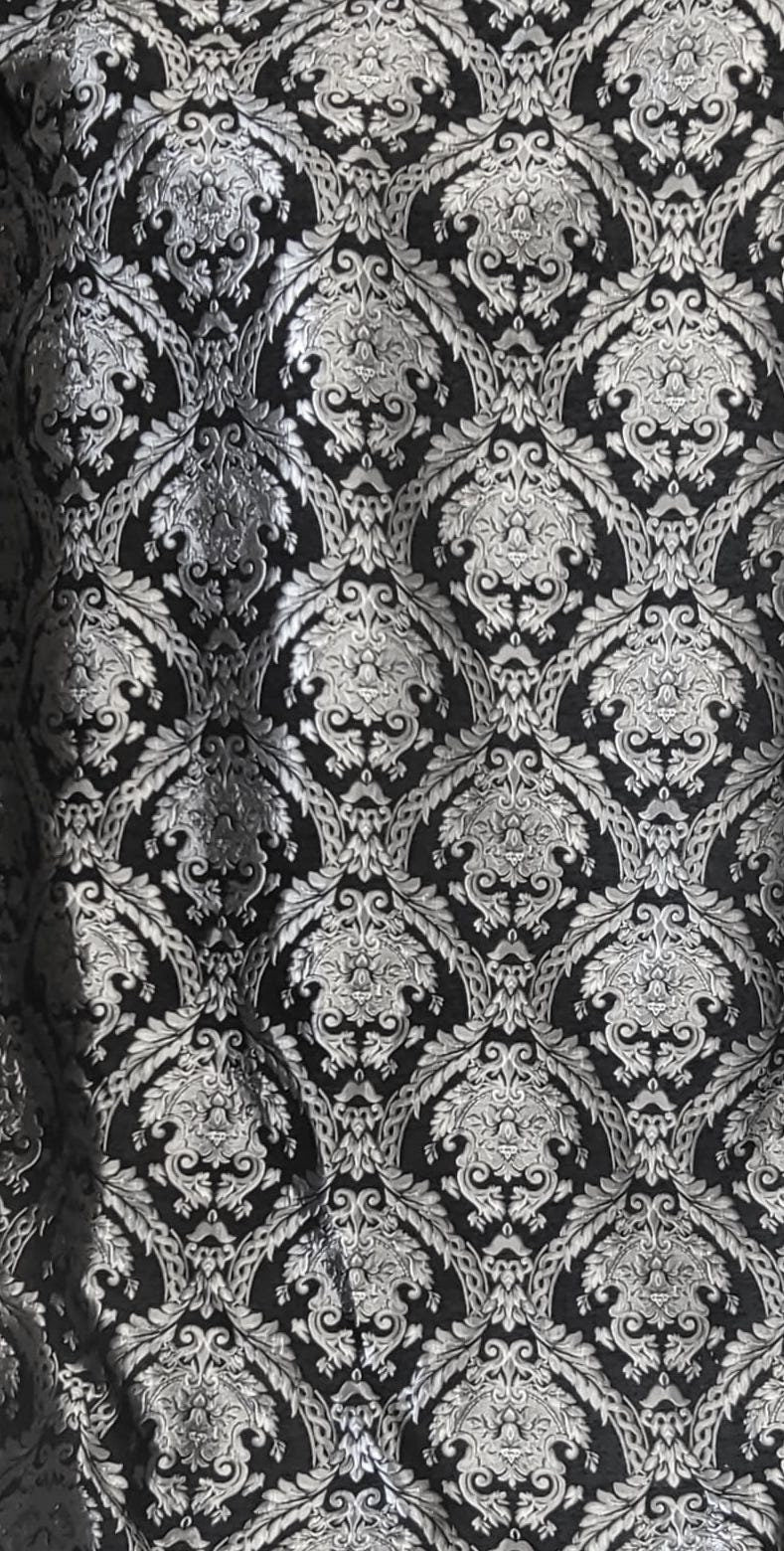 Chenille BAROQUE UPHOLSTERY Fabric Jacquard Damask, 58" wide ,color Black/Silver, Reversible, sold by yard in continuous yards