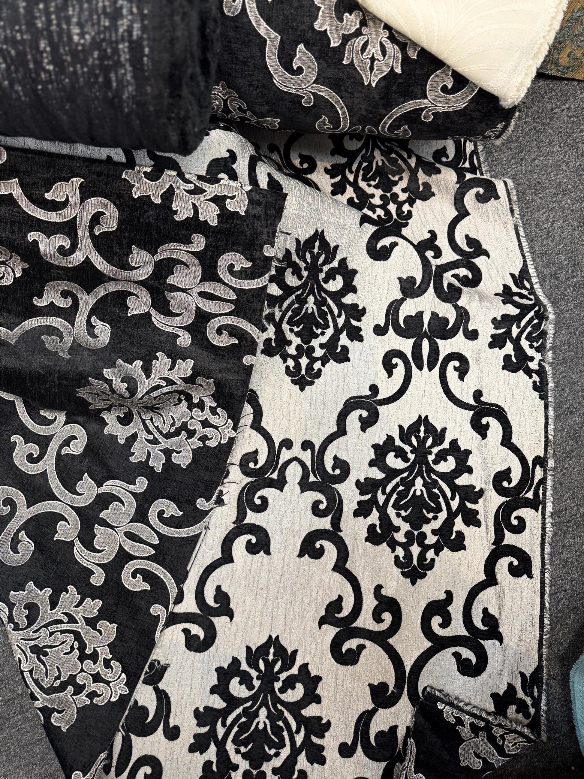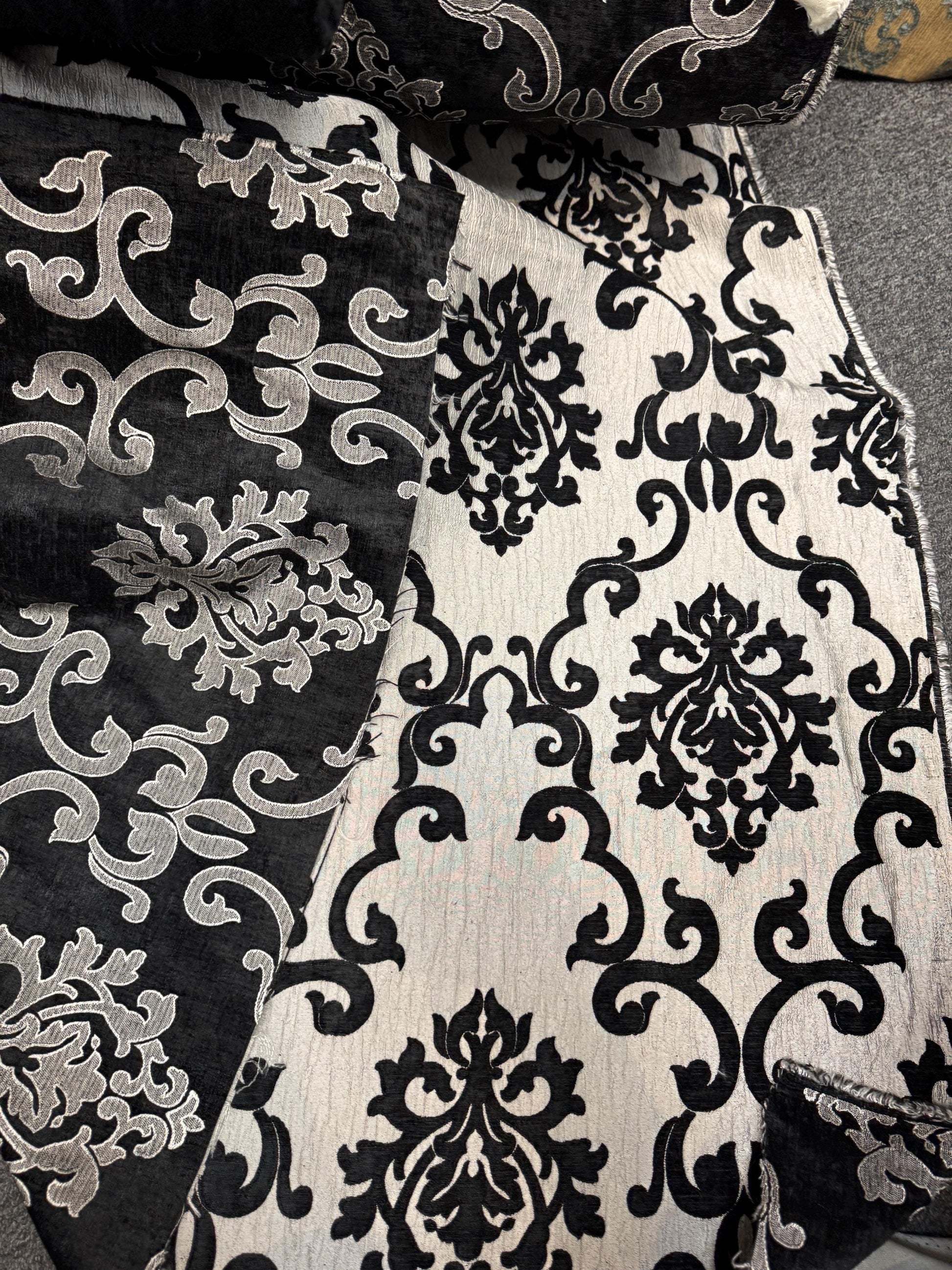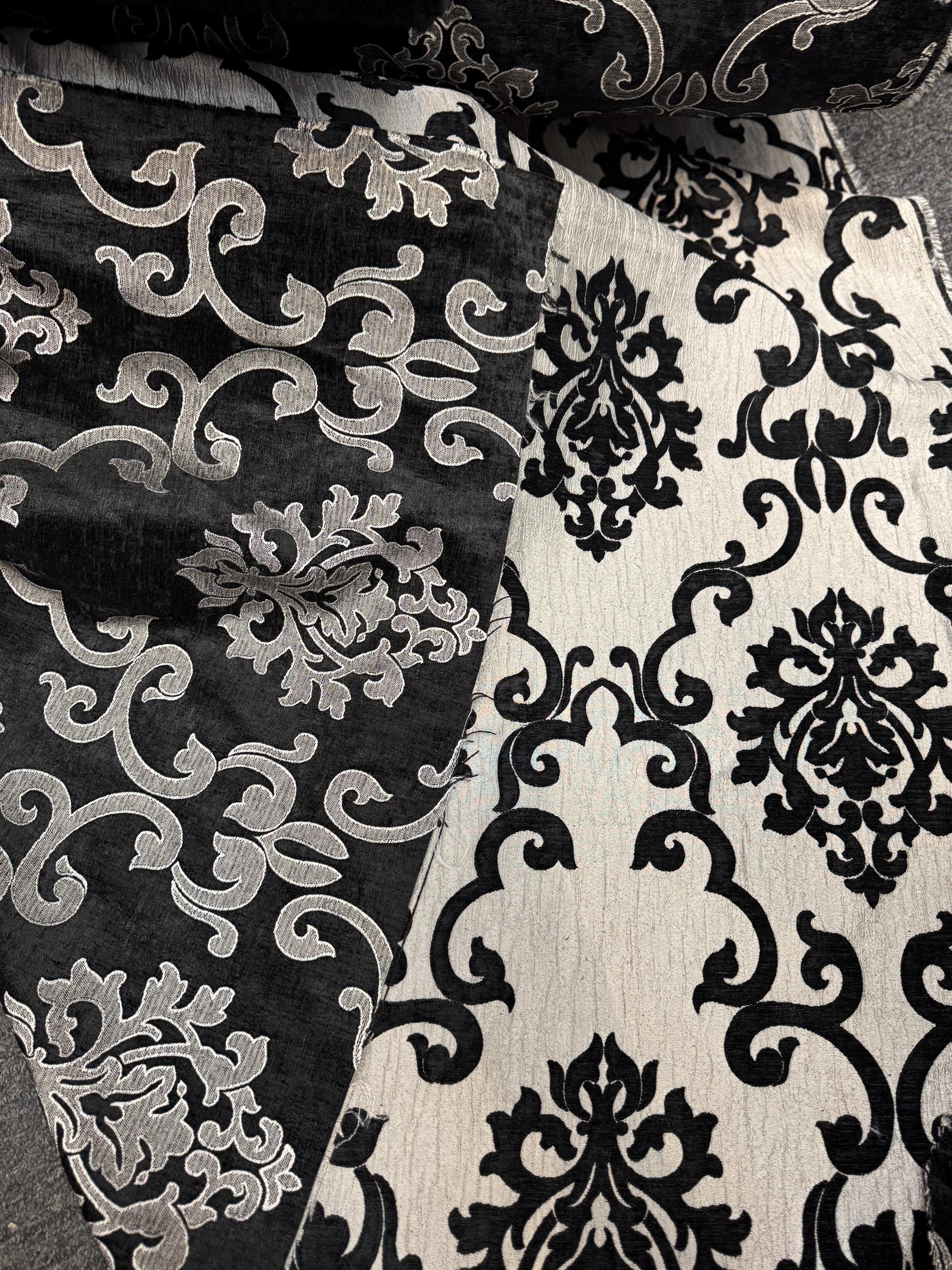 Chenille BAROQUE UPHOLSTERY Fabric Jacquard Damask, 58" wide ,color Black/silver sold by yard in continuous yards