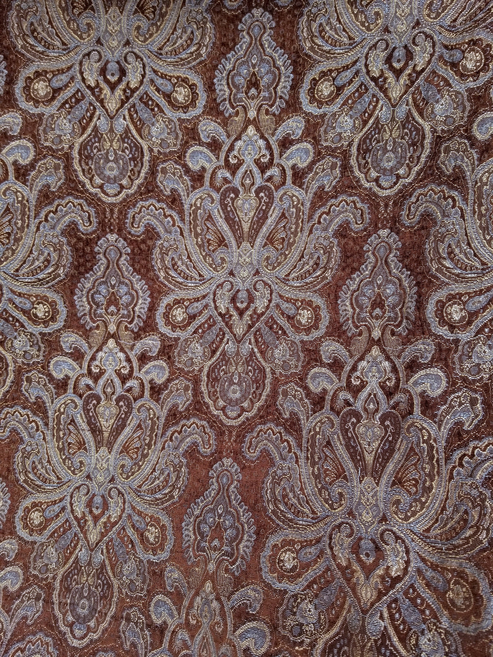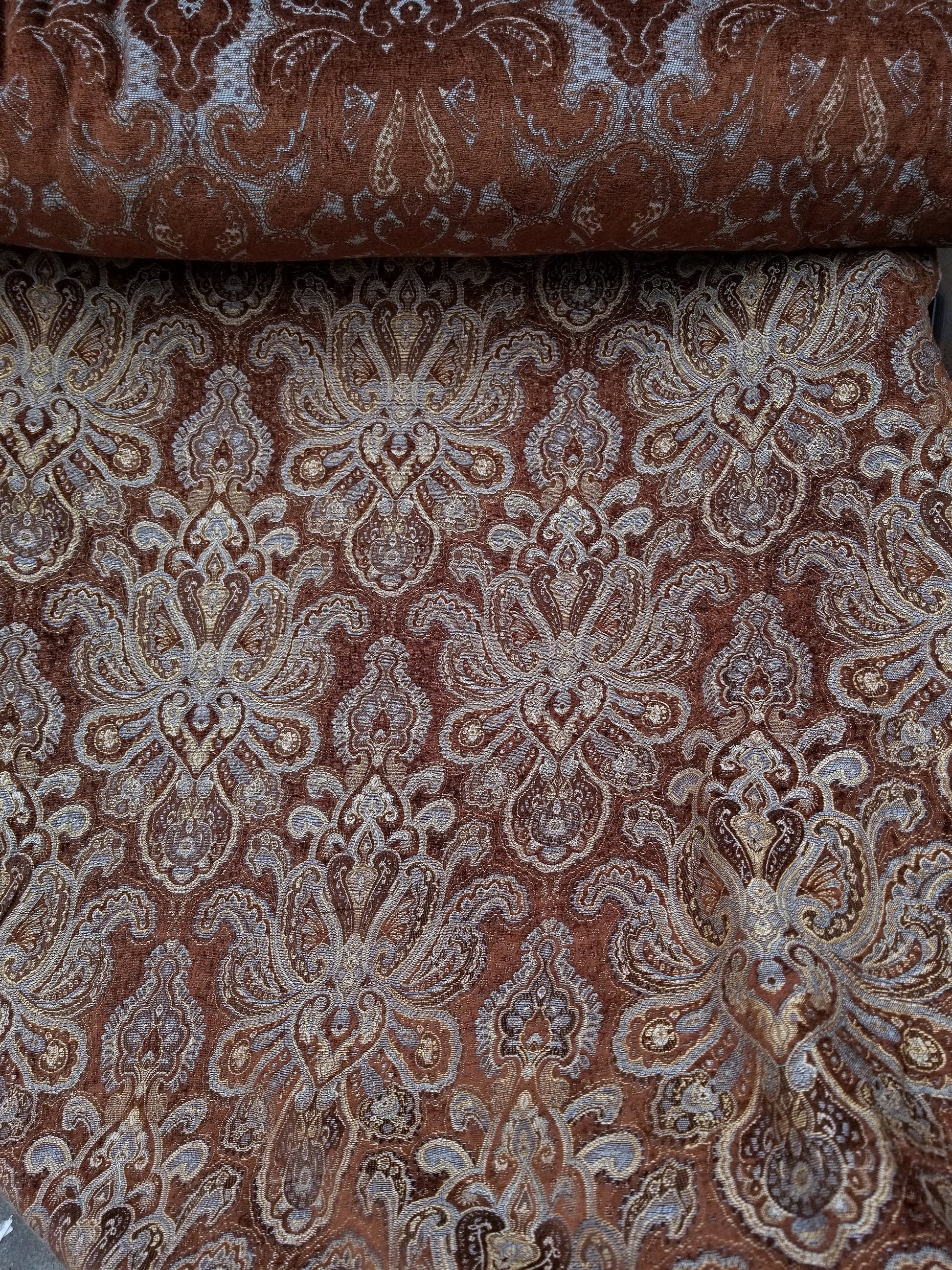 Chenille BAROQUE UPHOLSTERY Fabric Jacquard Damask, 58" wide ,color Blue/Brown, sold by yard in continuous yards