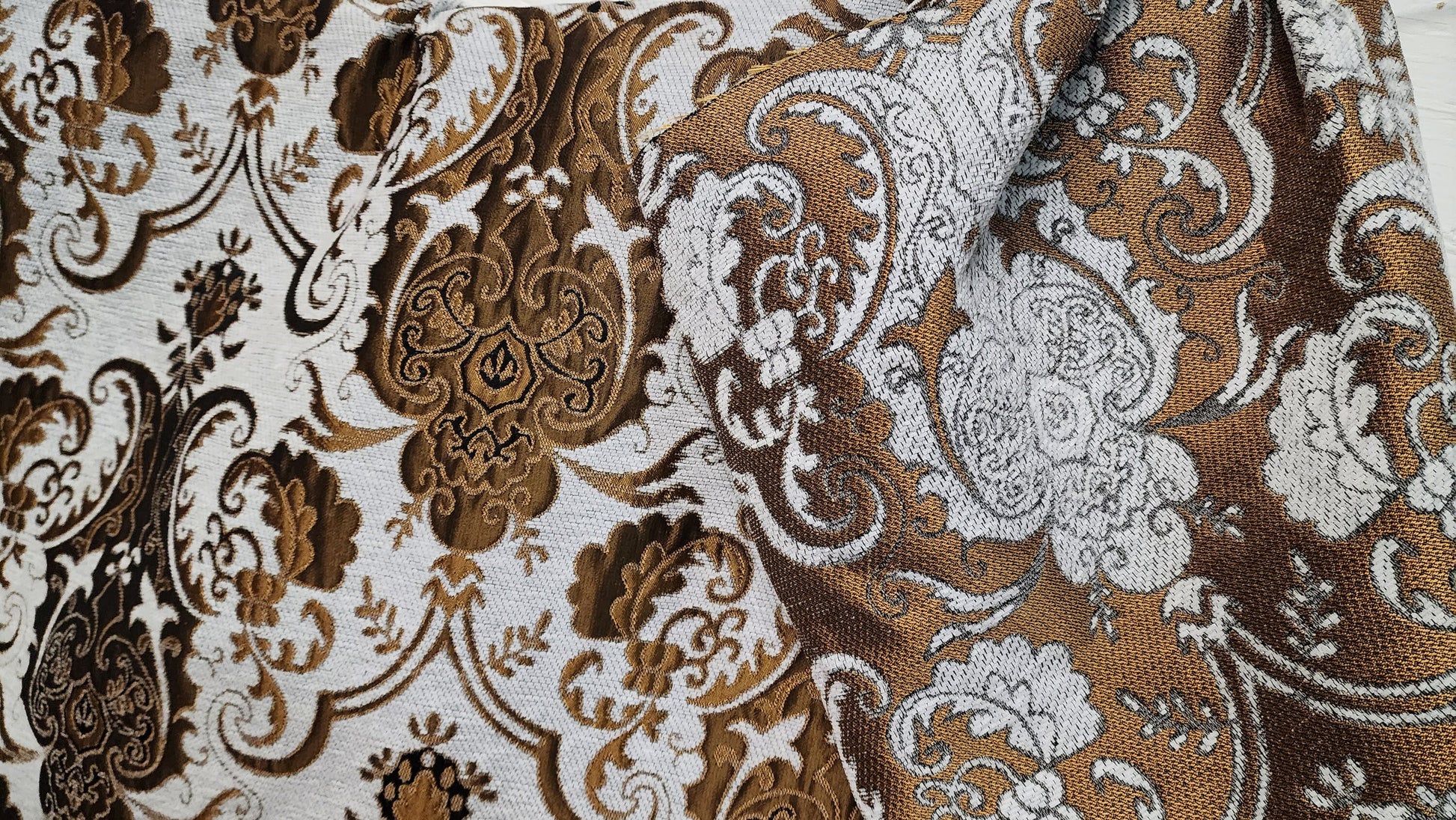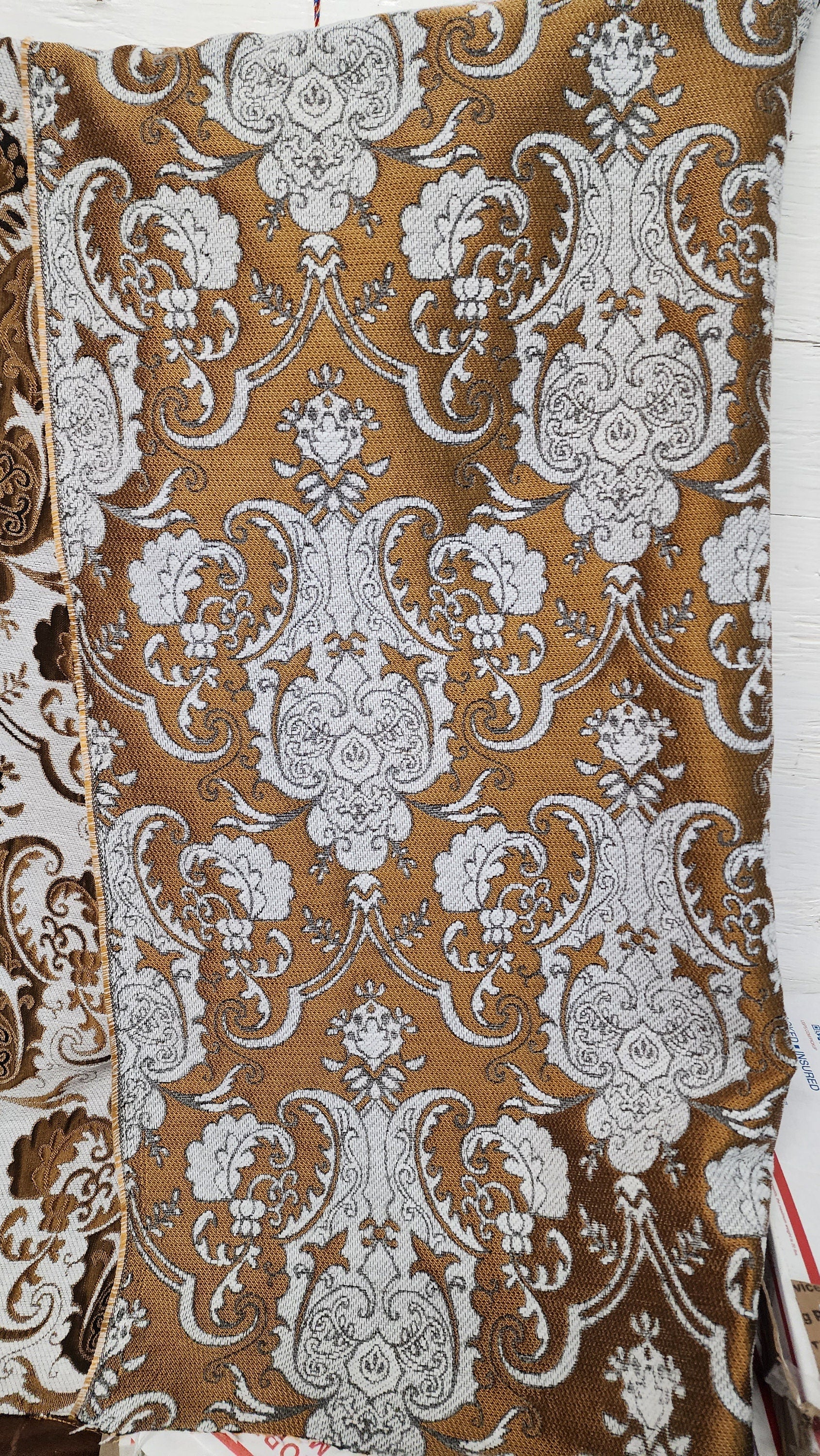 Chenille BAROQUE UPHOLSTERY Fabric Jacquard Damask, 58" wide ,color Cobalt Light silver/rush tan, sold by yard in continuous yards