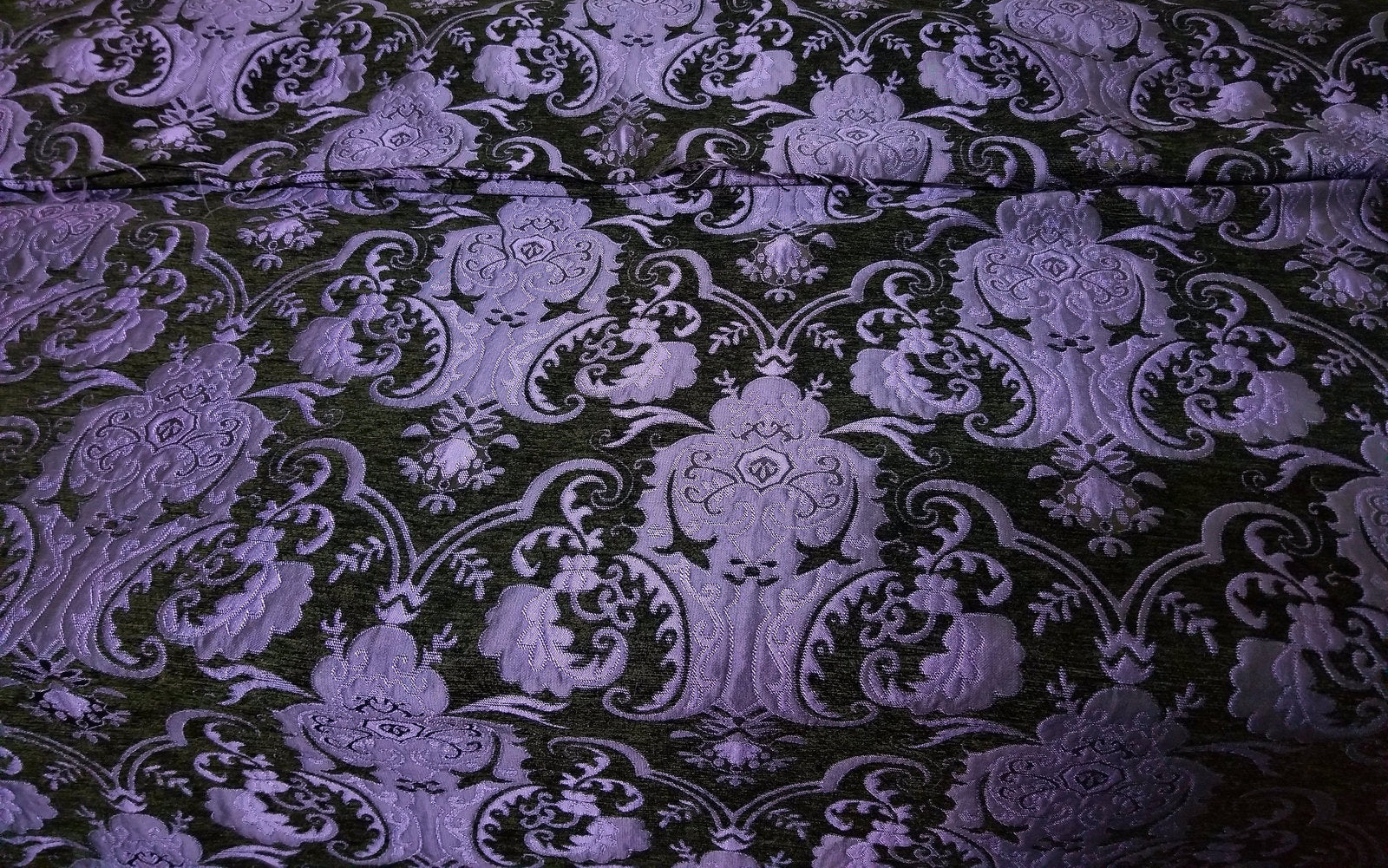 Chenille BAROQUE UPHOLSTERY Fabric Jacquard Damask, 58" wide ,color purple/Black, sold by yard in continuous yards