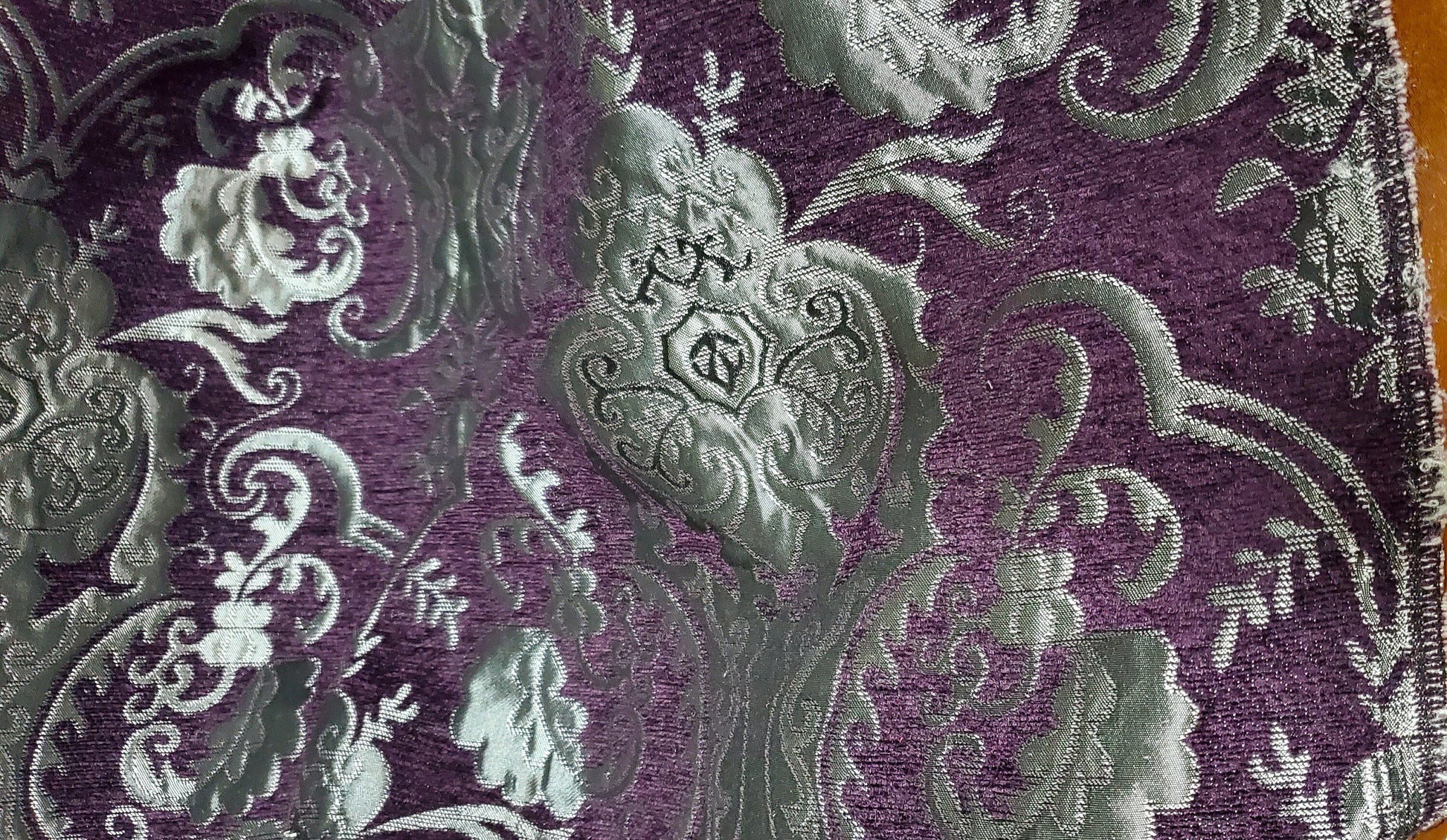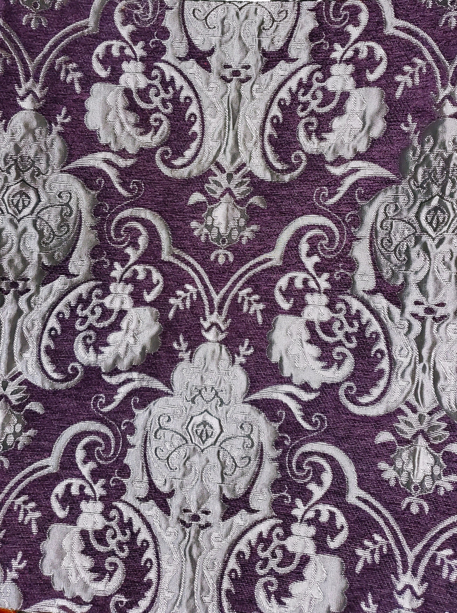 Chenille BAROQUE UPHOLSTERY Fabric Jacquard Damask, 58" wide ,color Purple/silver, sold by yard in continuous yards