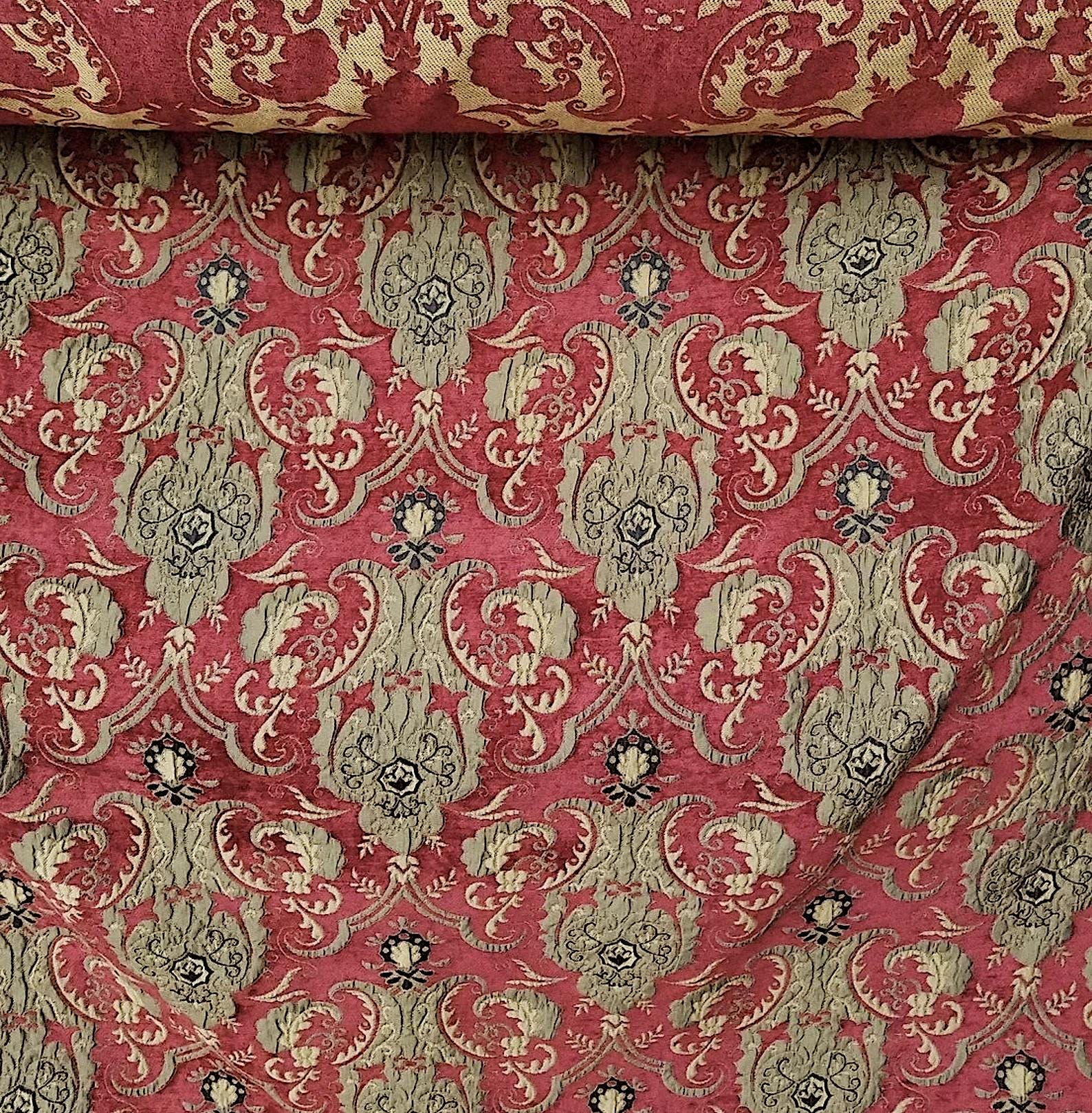 Chenille BAROQUE UPHOLSTERY Fabric Jacquard Damask, 58" wide ,color Red/Gold, sold by yard in continuous yards