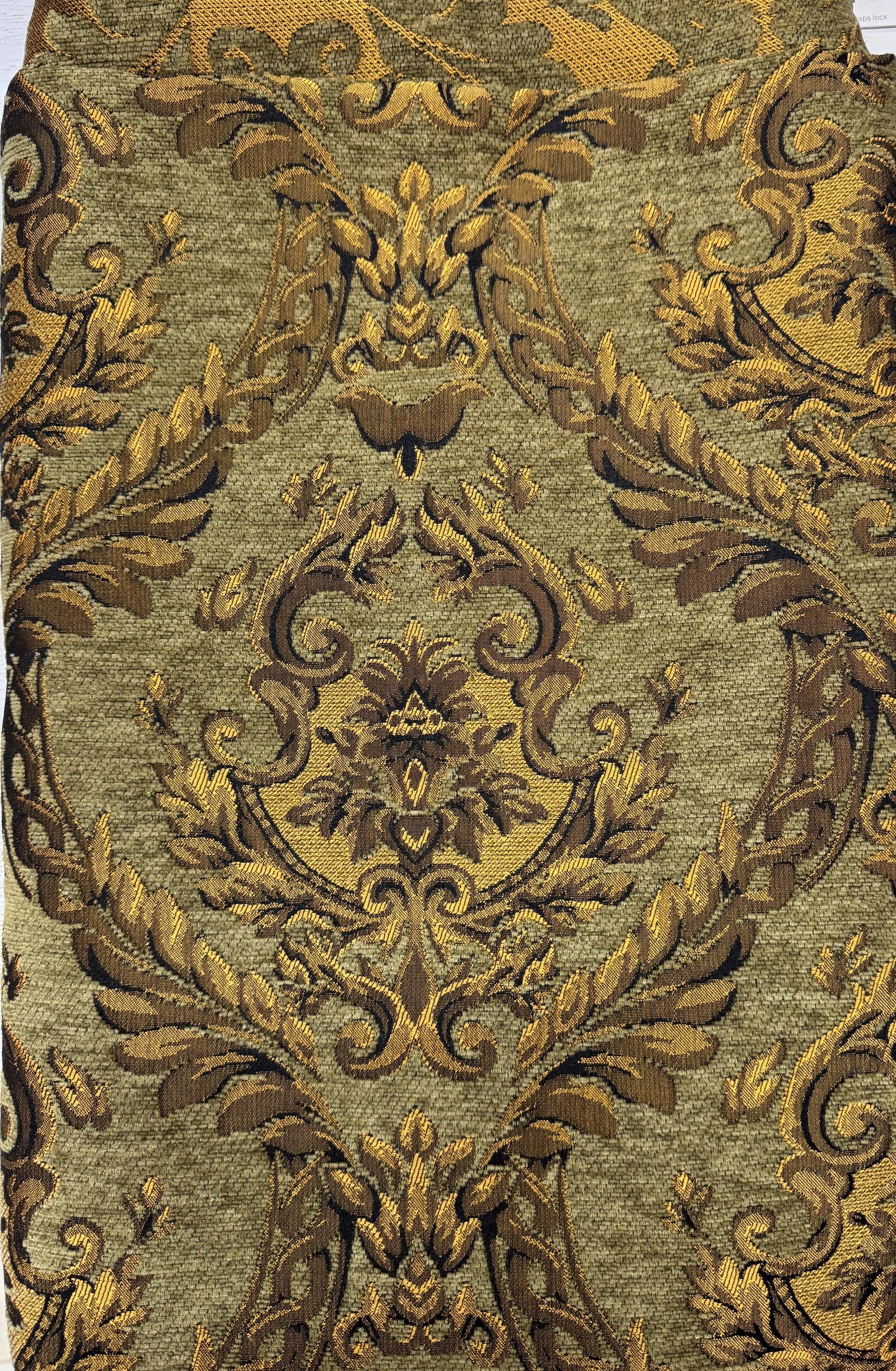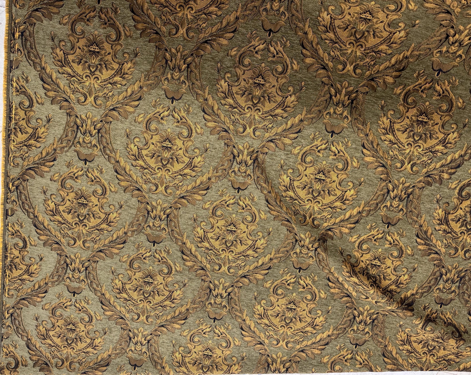 Chenille BAROQUE UPHOLSTERY Fabric Jacquard Damask, 58" wide ,color Sage green/gold, sold by yard in continuous yards