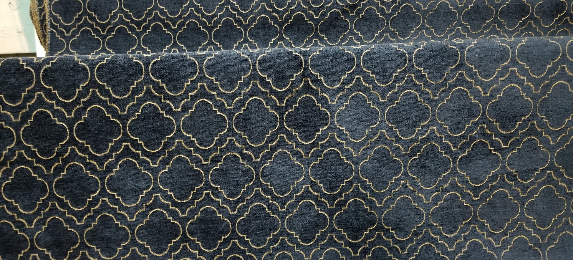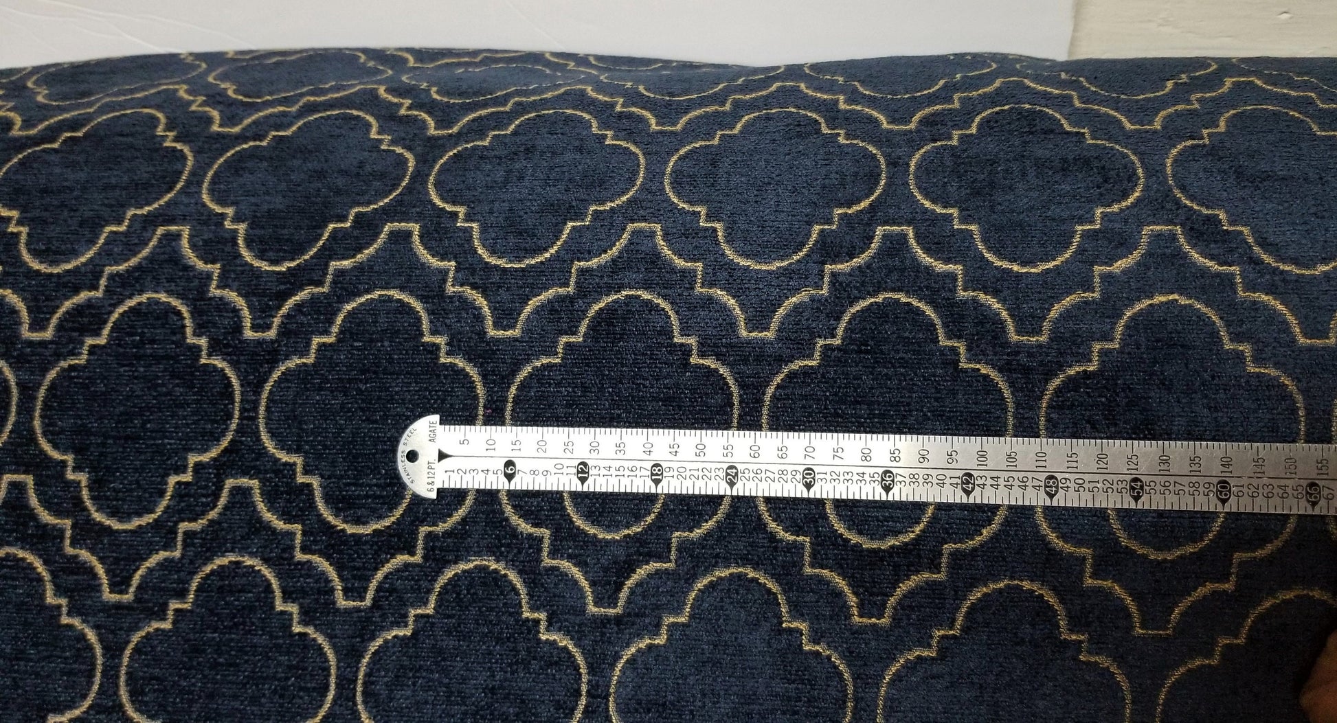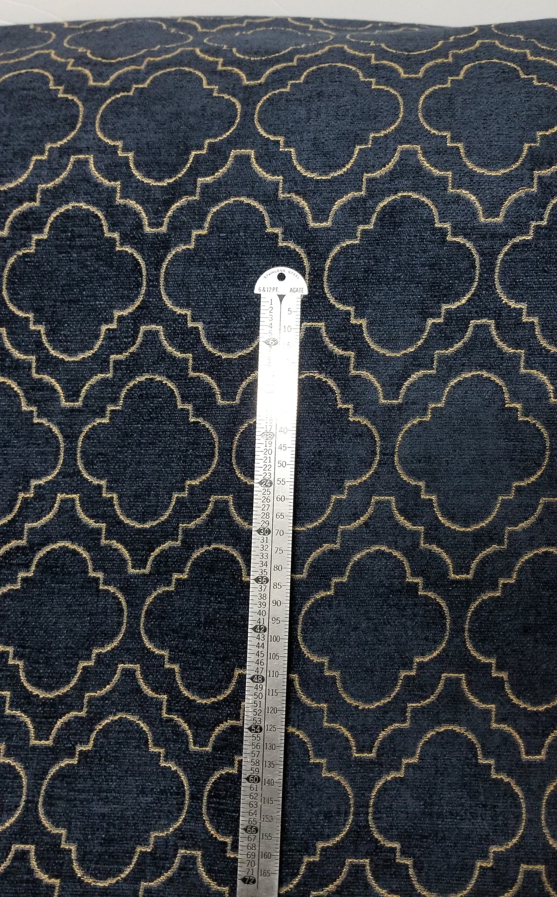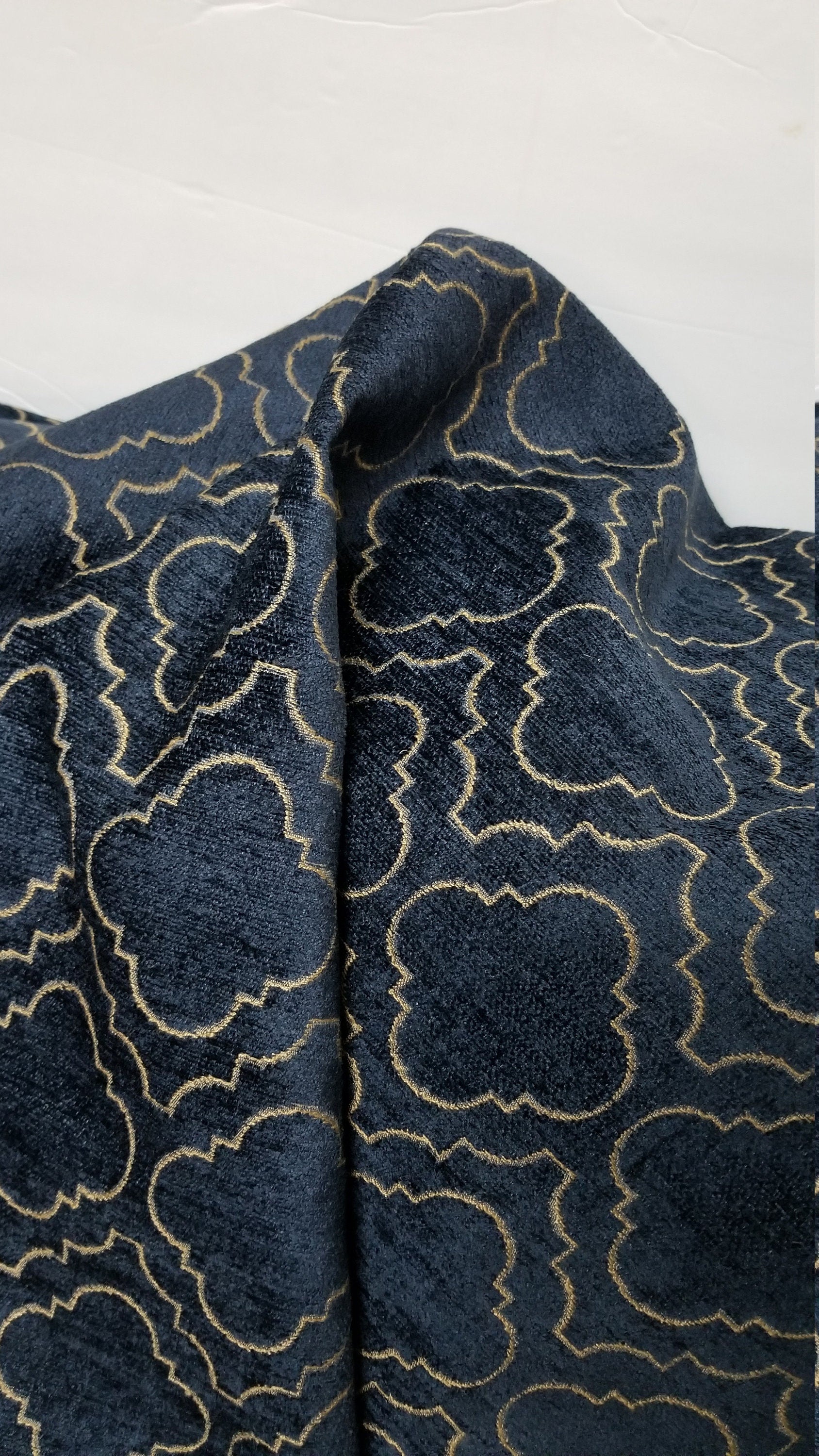 Chenille Diamond UPHOLSTERY Fabric Jacquard Damask, Color Blue/Gold, 58" wide , sold by yard in continuous yards