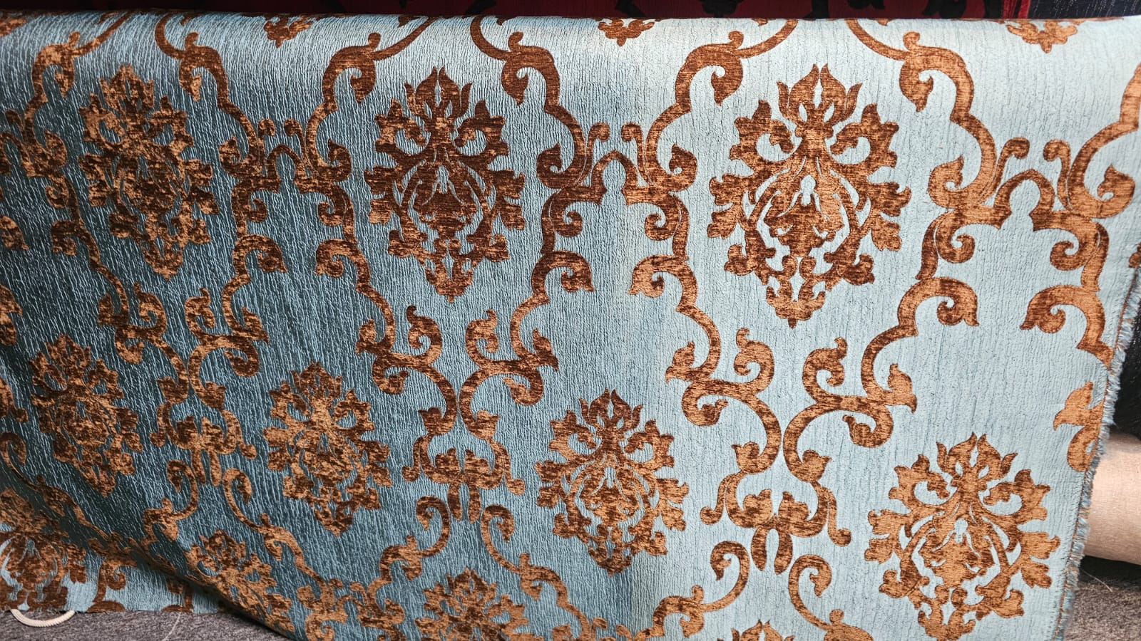 Tapestry fabric is a heavy type of cloth that is intricately woven from thick fibers many times by hand to give the fabric a rich color and unique design. Our Damask Tapestry Chenille Fabric is a thick type of fabric ideal for upholstery,wall paper, etc uses such as furniture and similar projects. The background of this fabric is made from Chenille which has a fuzzy texture like velvet but has thicker fibers and is not as soft. Please also note that in as much as we would want the colors in the photos to be as accurate as how they look in person, there is big tendency that the colors MIGHT look different on every computer screen