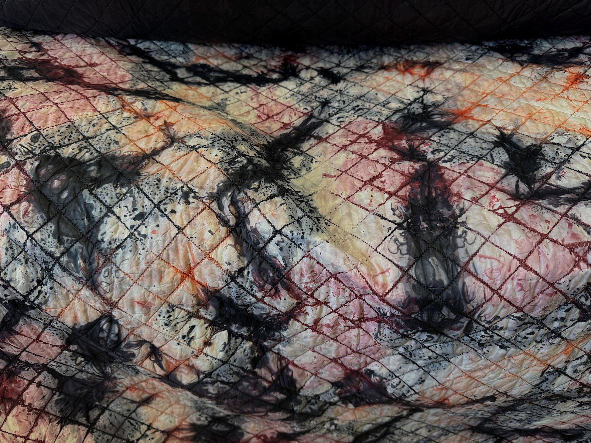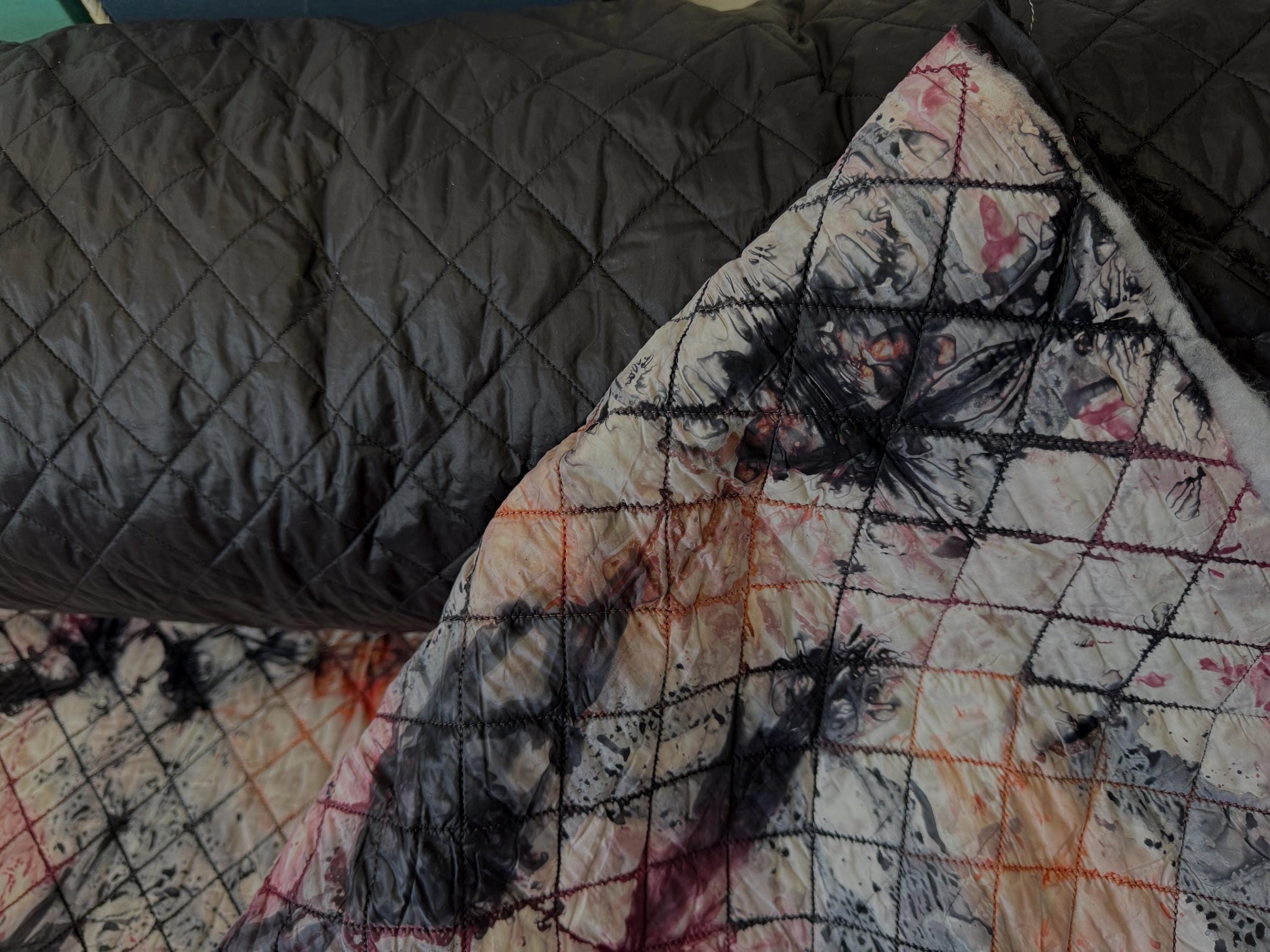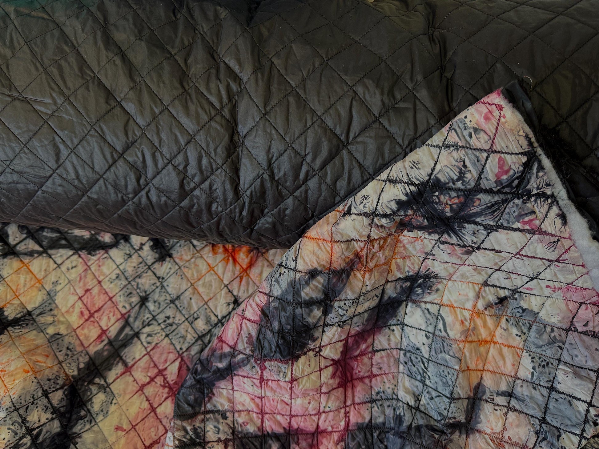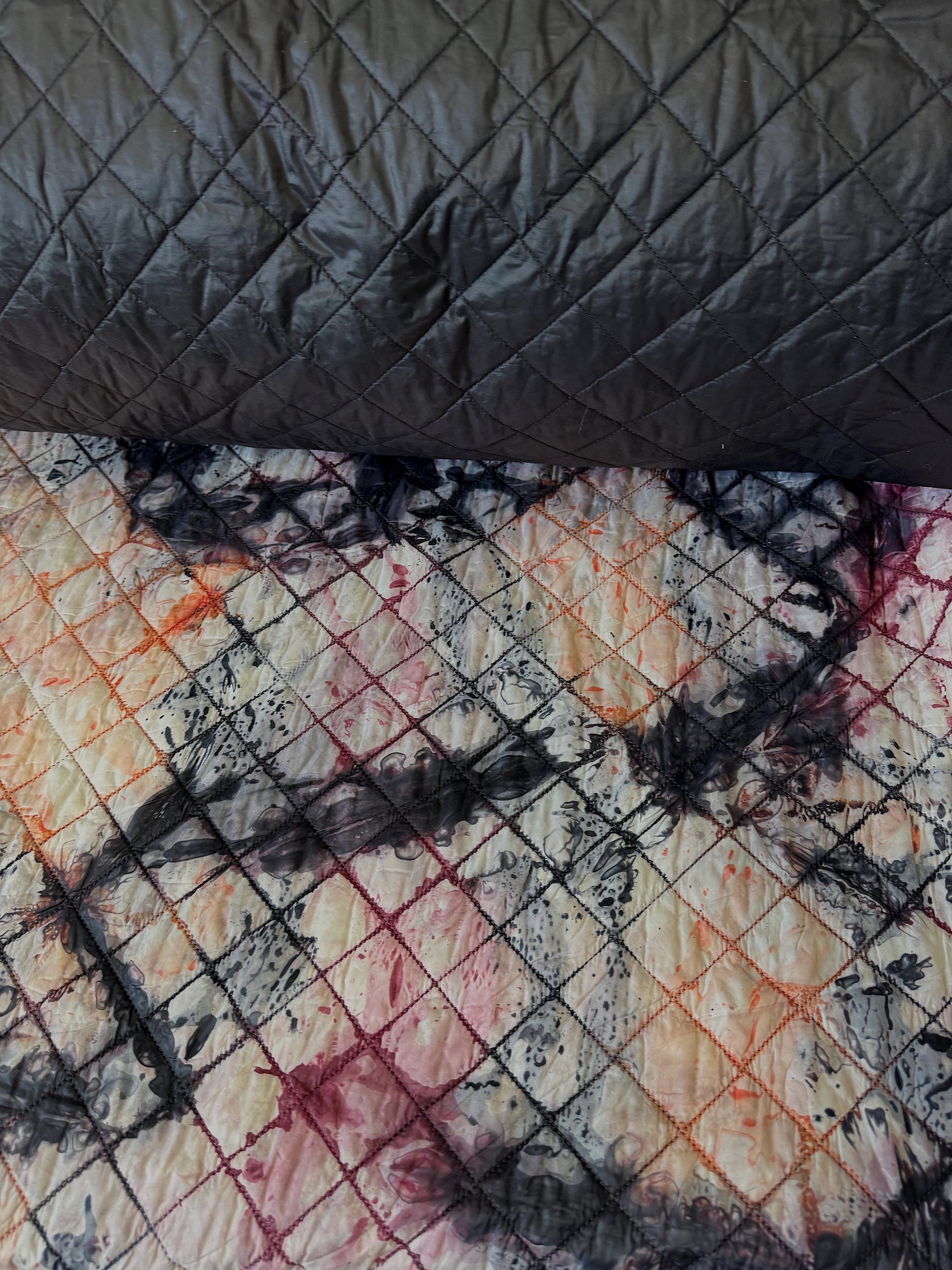 Double-Faced Reversible Pre-Quilted Black/Camouflage color, Fabric. 54" wide, l 100% / polyester Fabric by The Yard