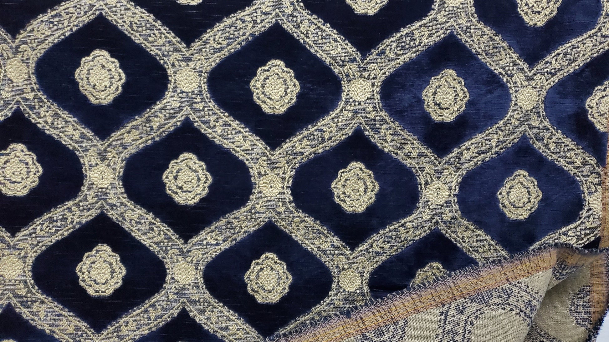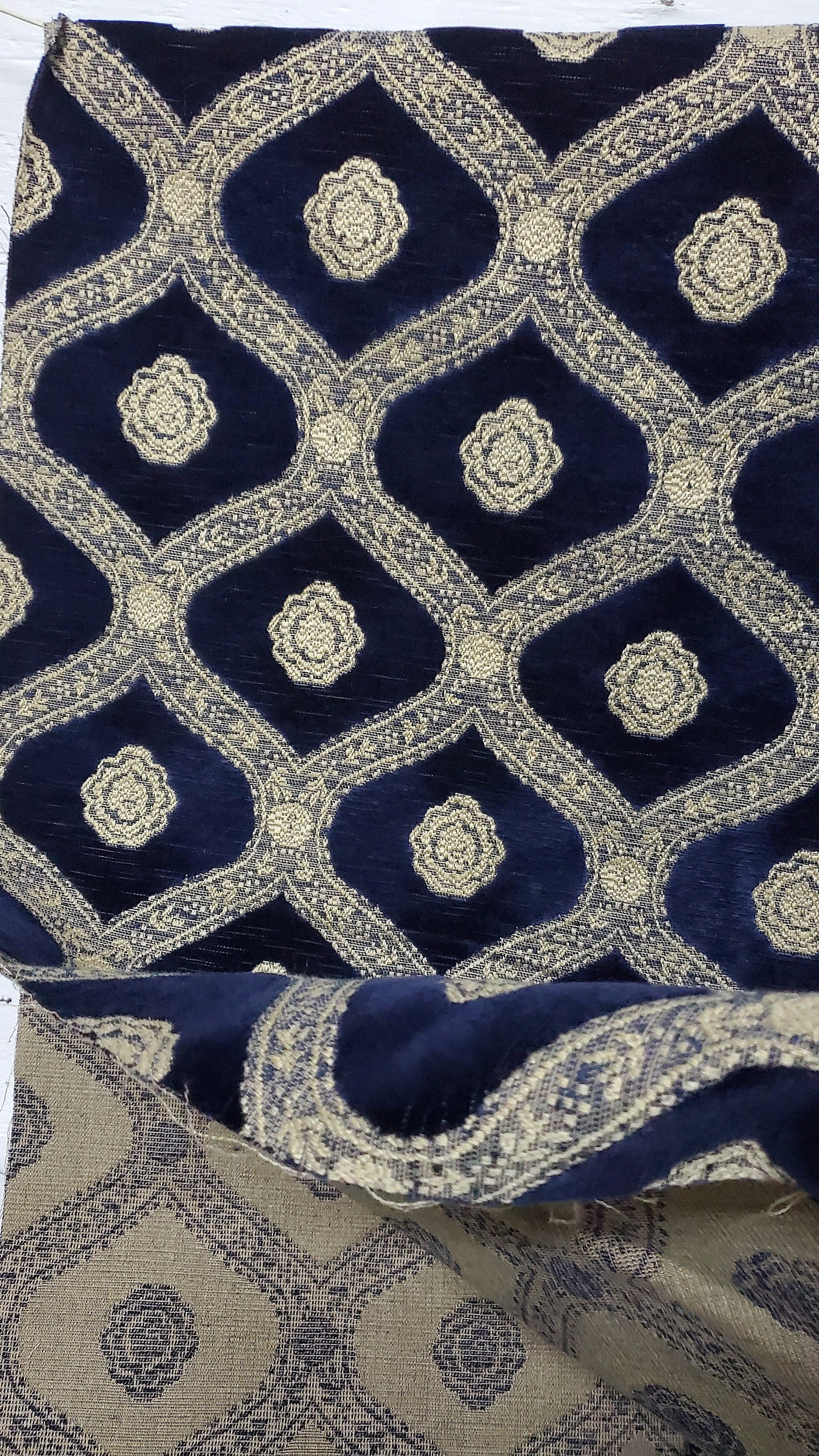 Kravet Couture Chenille Medallion Fabric, Night blue color, 54" wide, sold by yard