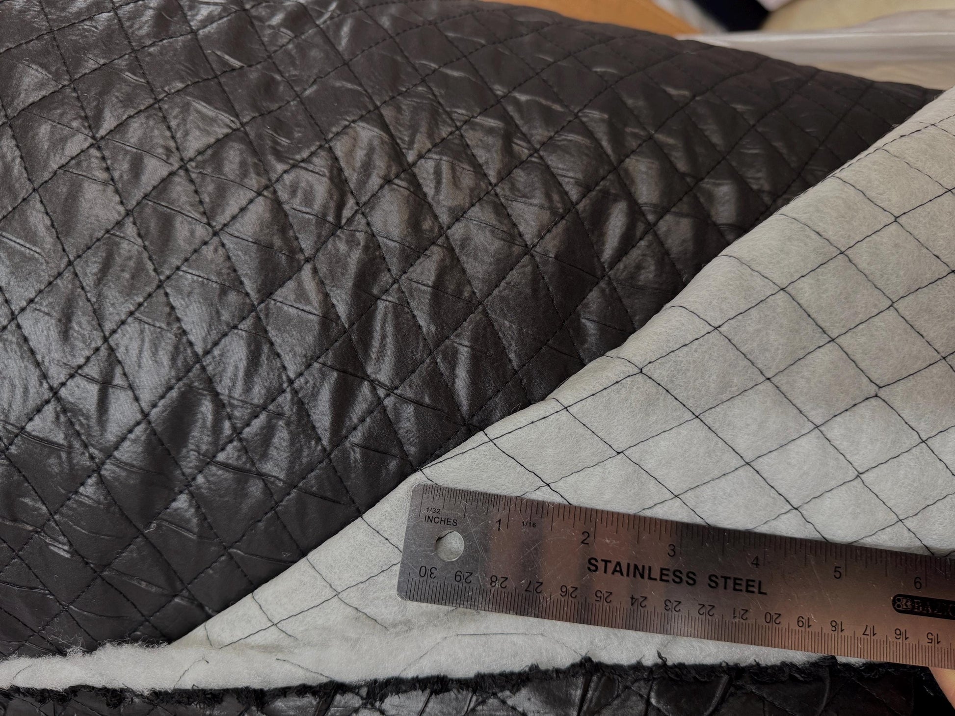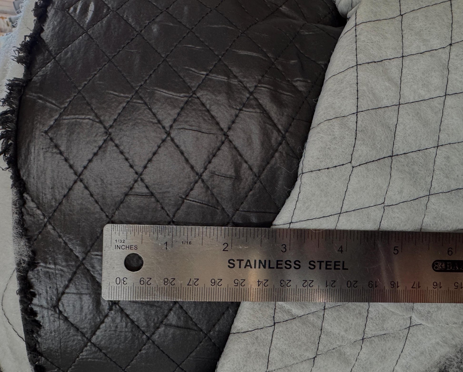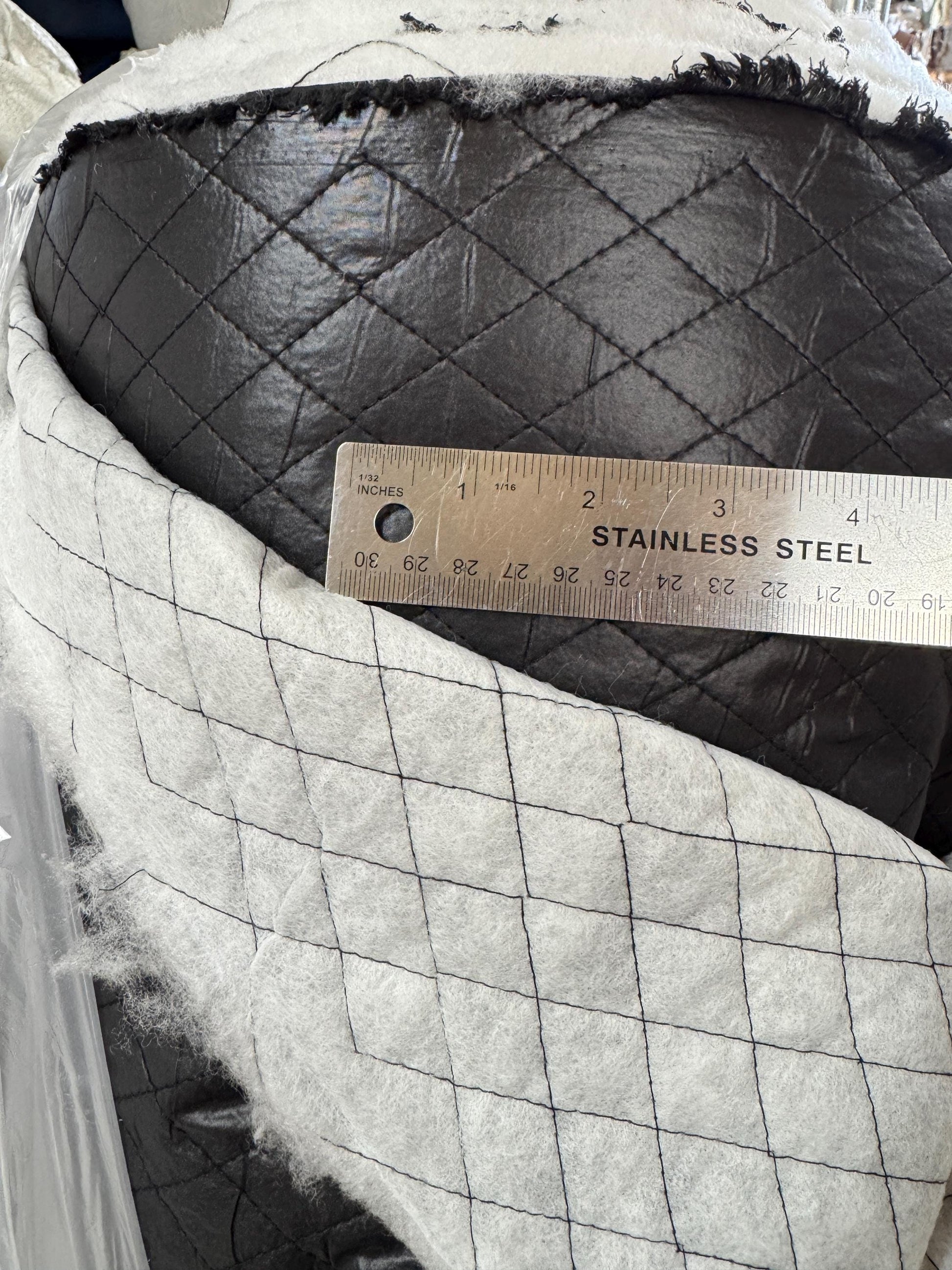 Polyester Quilted Padded Lining Fabric Black, 1" inche