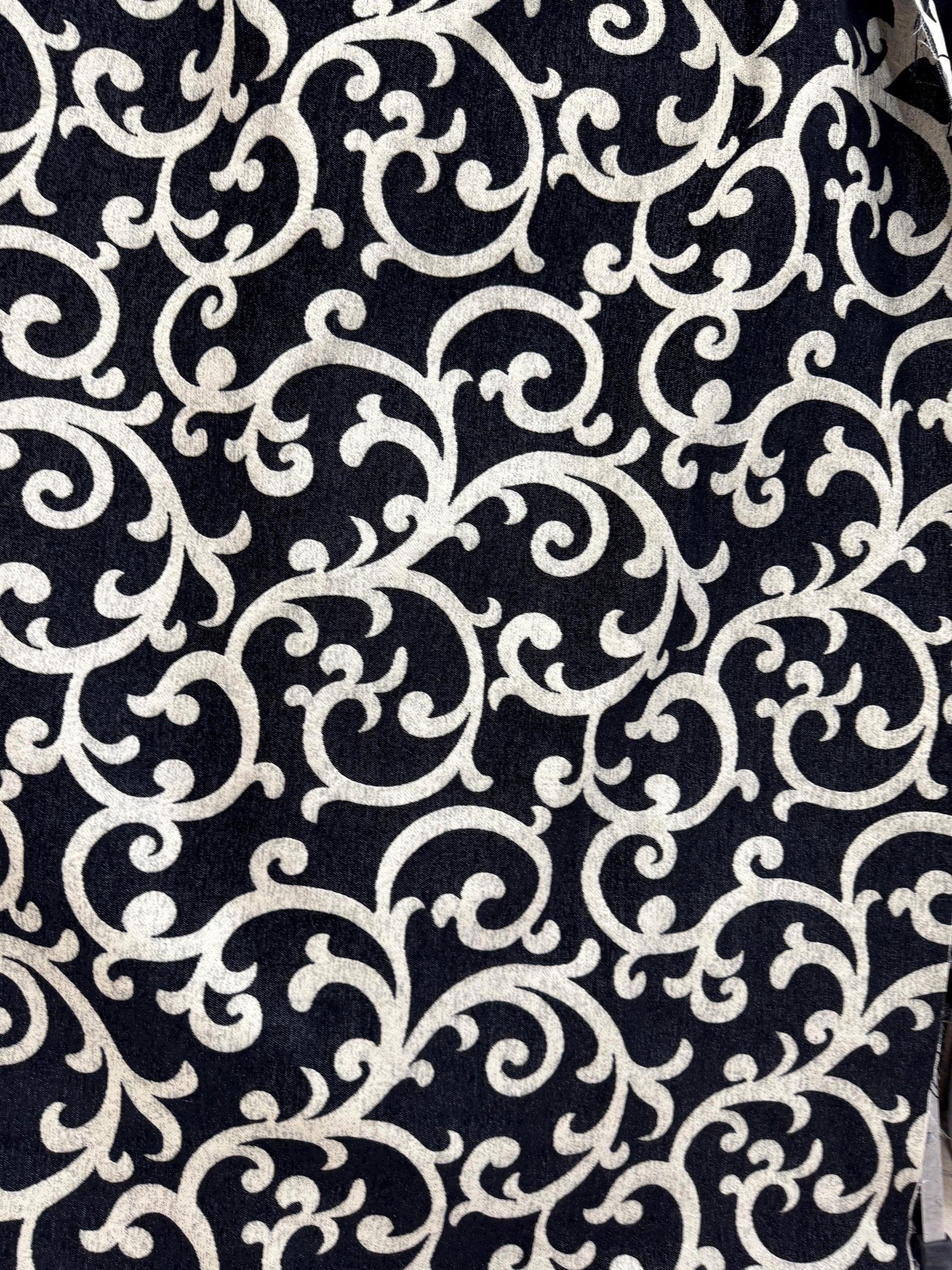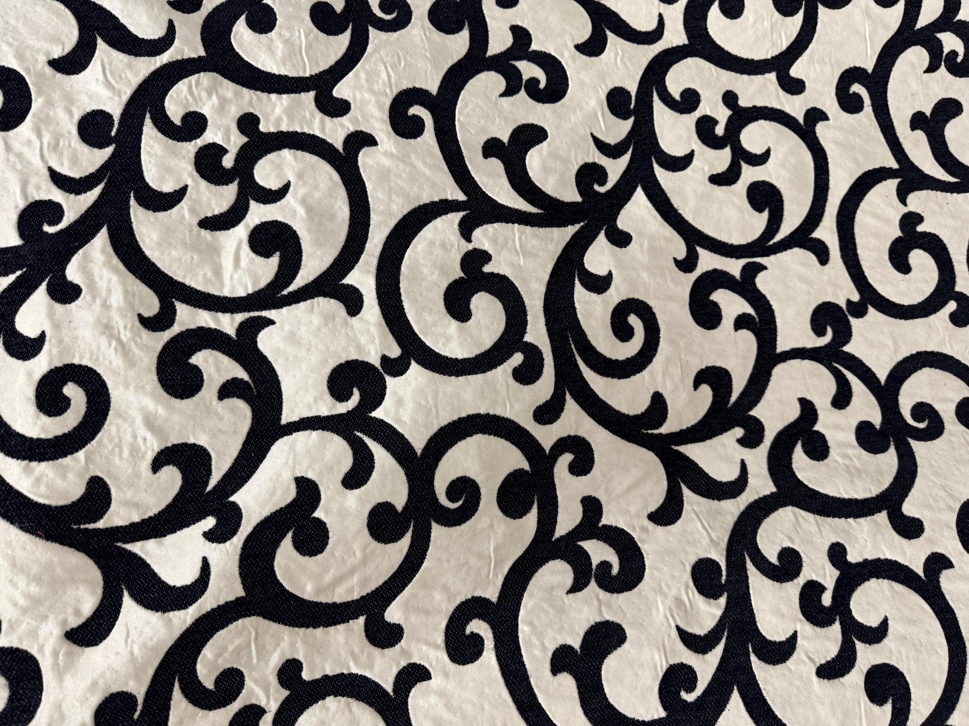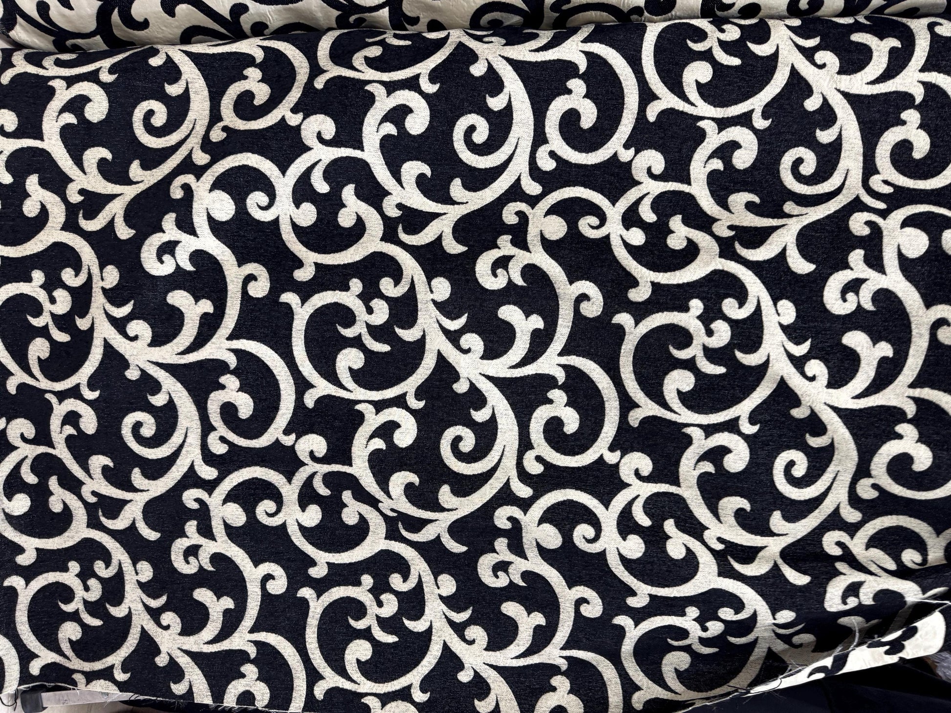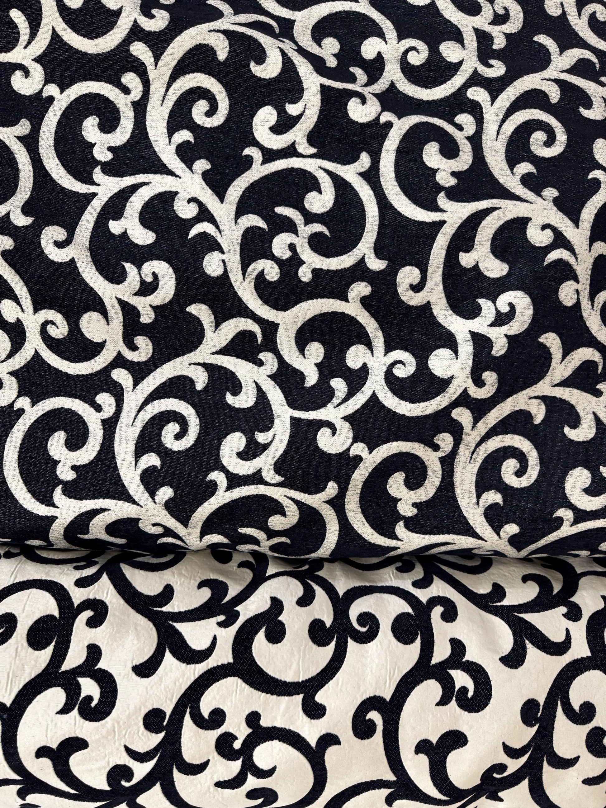 Tapestry chenille fabric Floral Leaf, upholstery fabric, Black/cream, reversible, - 56" width - sold by yard in continuous yards