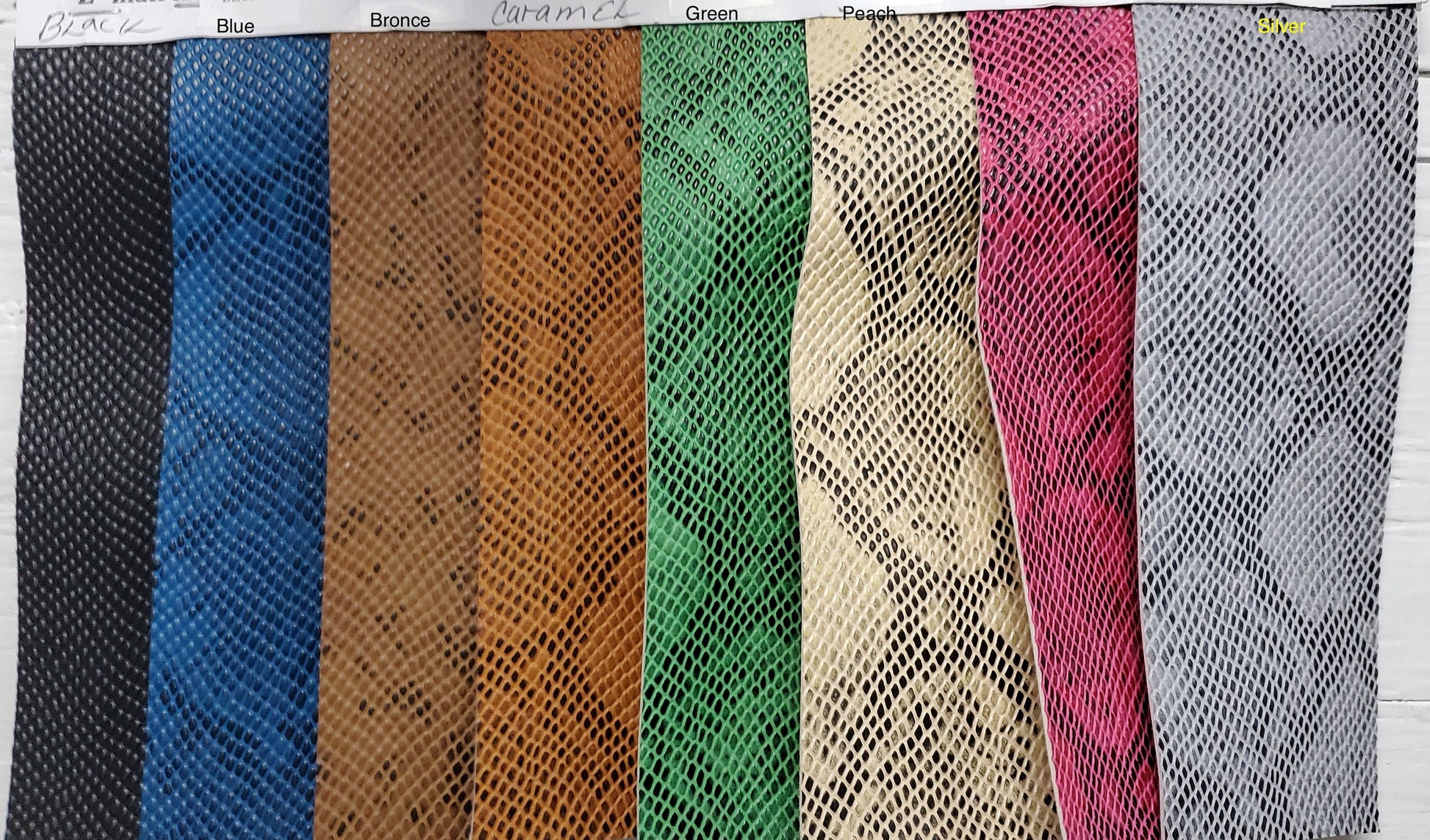 KING COBRA SNAKE PYTHON VINYL HAS A GREAT TEXTURE TO IT. WITH A HIGH QUALITY PVC BACKING TO IT. VINYL CONTENT ARE BOTH PVC AND PU. AMAZING FEEL TO IT. EXTRA HIGH QUALITY VINYL VERY HIGH END QUALITY FABRIC The KING KOBRA Vinyl Fabric feels extremely like the real thing! The exotic pattern looks like real SNAKE! Fabric is embossed, vinyl finish and has texture to it. Use it for theatrical costuming home and commercial upholstery to add some reptilian theme to your projects. Content : PVC PU Width : 56" Wide Weight : 2 lb Per Yard Stretch: SLIGHT Uses: Great use Upholstery, fashion, purses, bags, luggages, motorcycle seats, automotive. Perfect for bar and restaurant seating, headboards or accents, stadium and theater seats. Stylish: Absolutely perfect for mixing with micro fiber suede or real leather. Perfect combination as a coordinate on seat and inside and outside booth. accented with real leather, truly a solid statement to any room's decor. Durability: KING COBRA faux vinyl resists tearing, punctures, stains, and abrasion. A very durable upholstery fabric. Will hold up under almost any conditions and retain its appearance for years to come. Care Instructions: KING KOBRA faux vinyl is remarkably easy to maintain: It requires only occasional dusting and wiping with a damp cloth. Use mild soap and water. Do not use bleach or alcohol based cleaners.