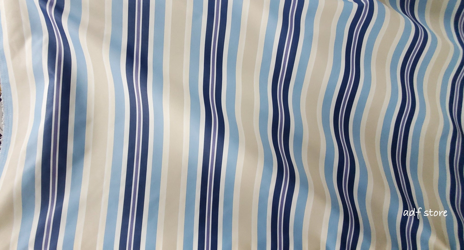 Waterproof Outdoor Canvas Patio Fabric, Multi Striped , Color Ivory, Navy , blue, 58 " wide, sold by yard