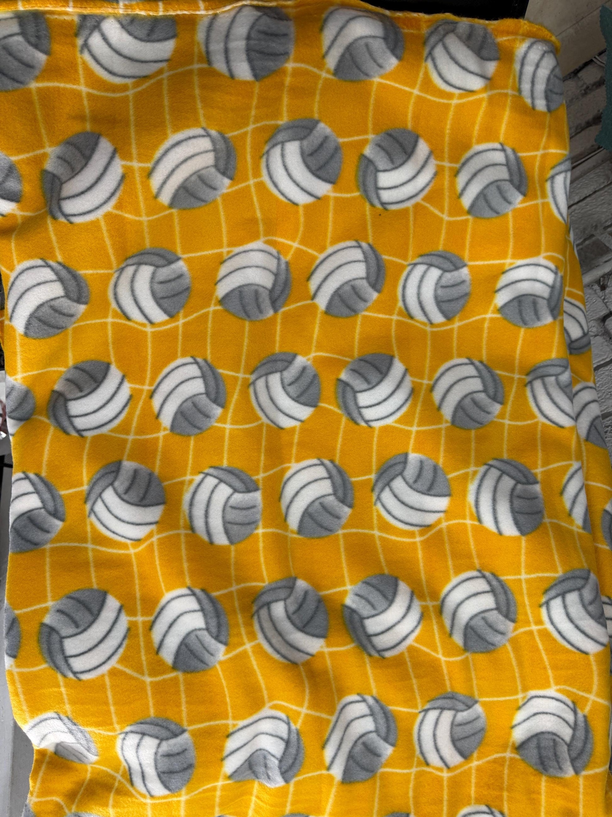 Yellow Volleyball Anti Pill Print Fleece Fabric 58 inches fabric sold by yard